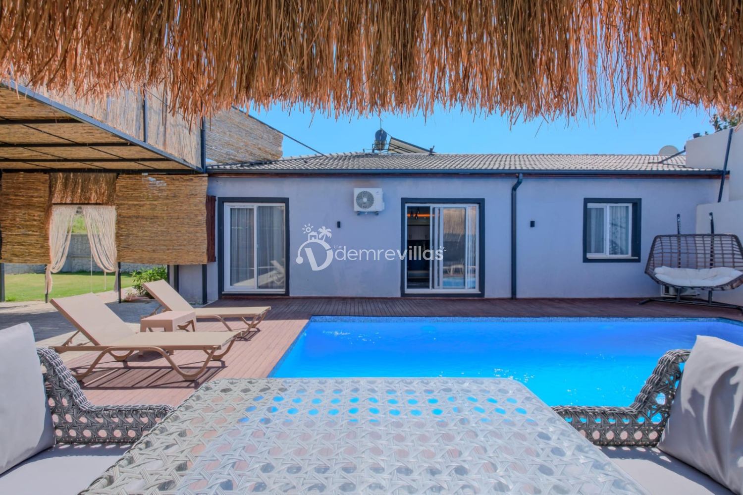 Geniş ve bakımlı bahçesiyle dikkat çeken villamızda, bahçe salıncağında dinlenebilir, doğanın tadını çıkarabilirsiniz. Özel yüzme havuzu sayesinde serinleyip rahatlayabilir, havuz kenarındaki şezlonglarda güneşin keyfini sürebilirsiniz. Küçük misafirlerimiz için özel olarak tasarlanmış çocuk oyun alanı da mevcuttur. Bu alanda çocuklar güvenle ve keyifle vakit geçirebilir.