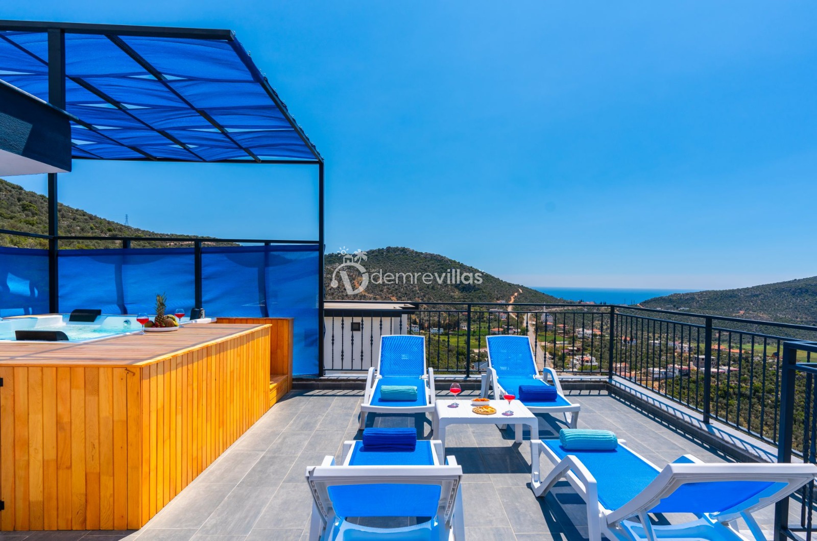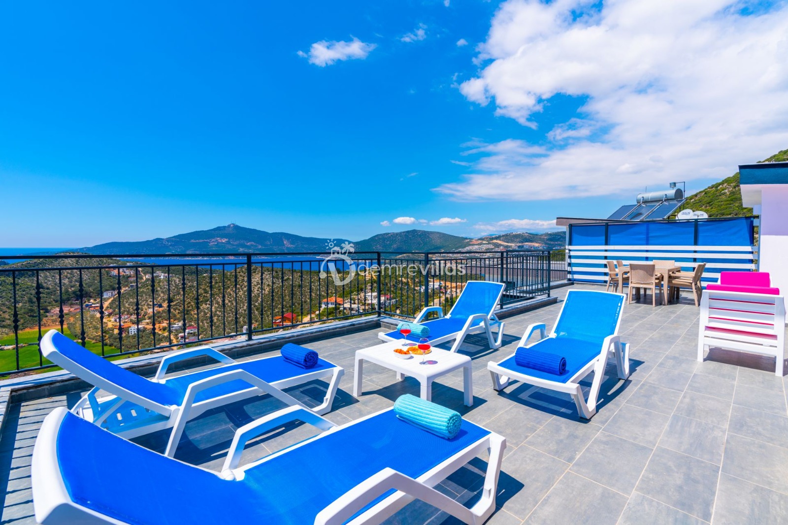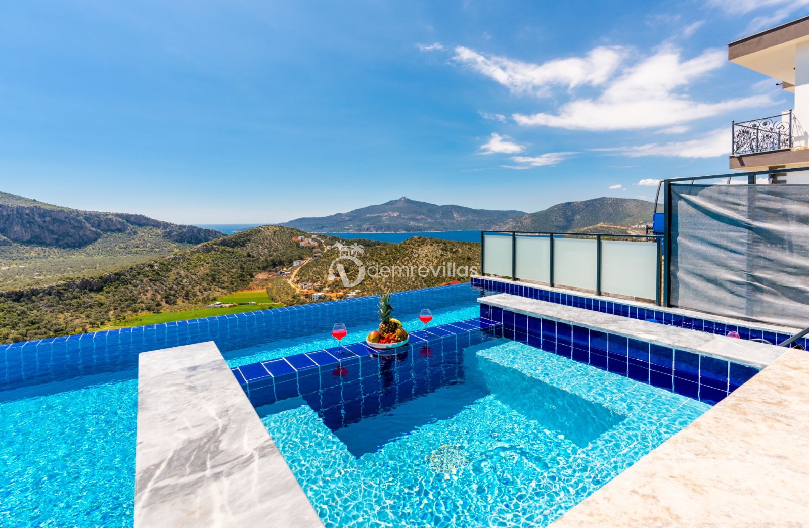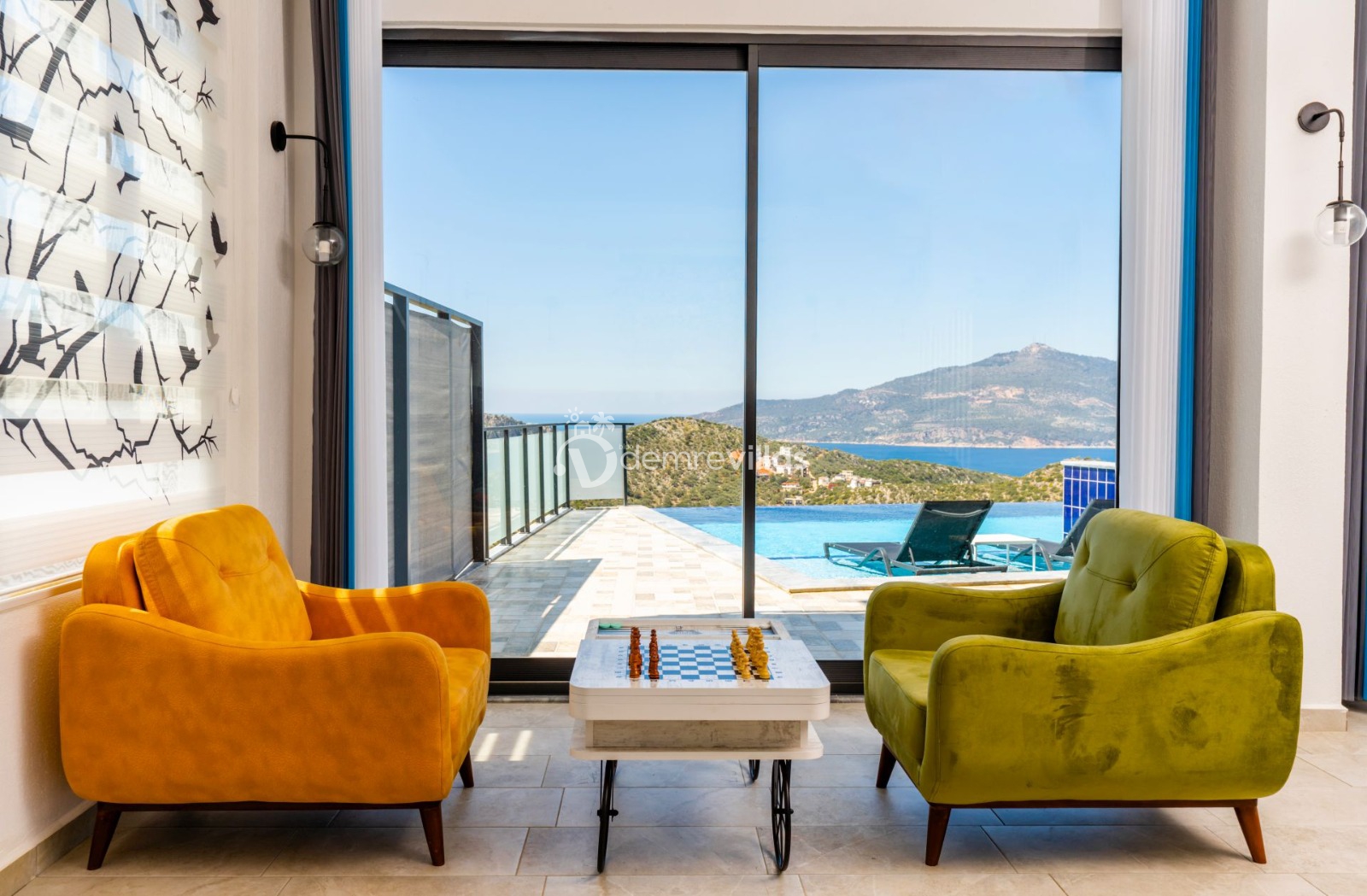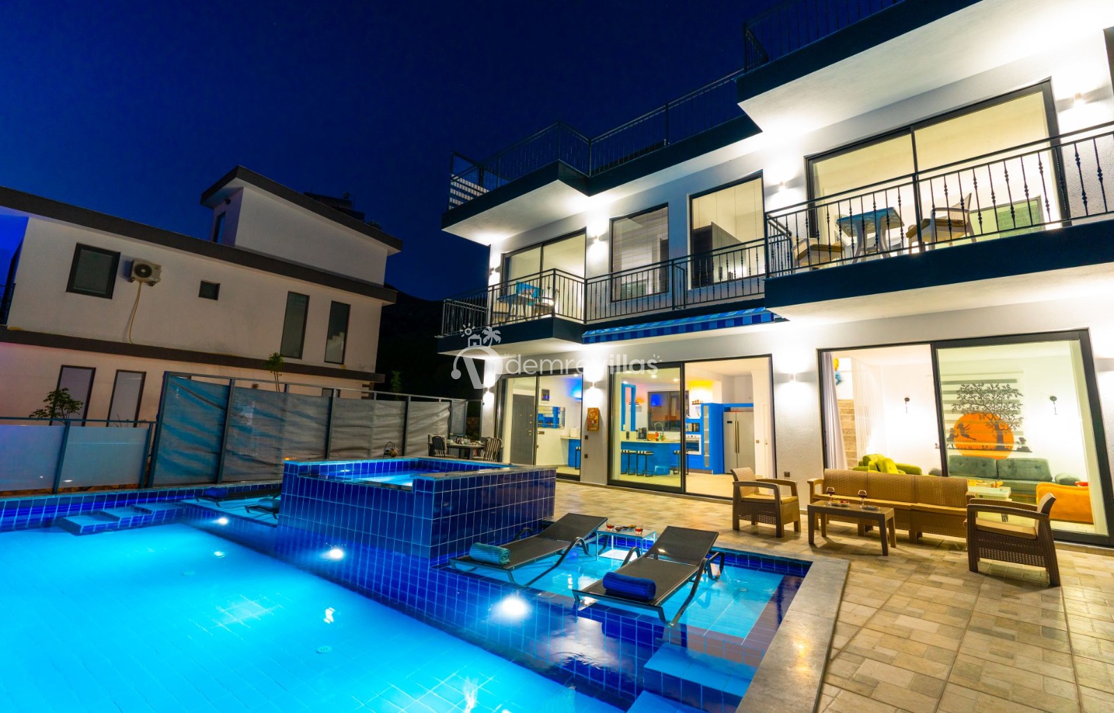Kalkan Bezirgan Ulugöl mevkisinde bulunan villamız 2 yatak odalı 4 kişilik kapasiteye sahip deniz manzaralı kiralık villalarımızdandır. Modern ve sade dekorasyonu ile huzurlu bir tatil ortamı sunan villamız aynı zamanda harika doğa manzarasına sahiptir.