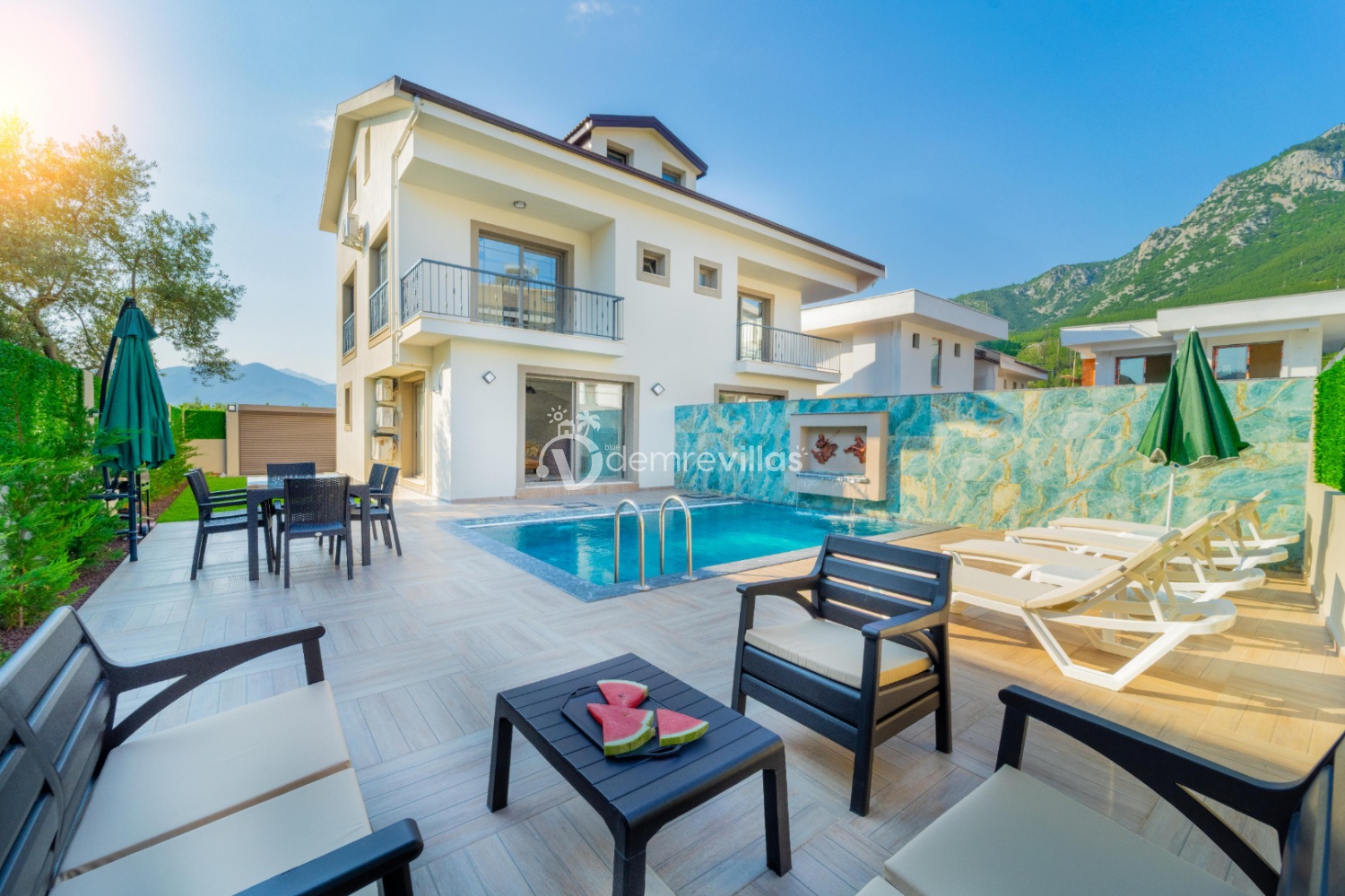 Fethiye Yeşilüzümlü mevkiinde bulunan villa, 3 yatak odasıyla 6 kişilik konaklama kapasitesi sunmaktadır. kalablık aileler ve arkadaş grupları tarafından tercih edilen villa, havuz alanı korunaklı bir yapıya sahiptir.