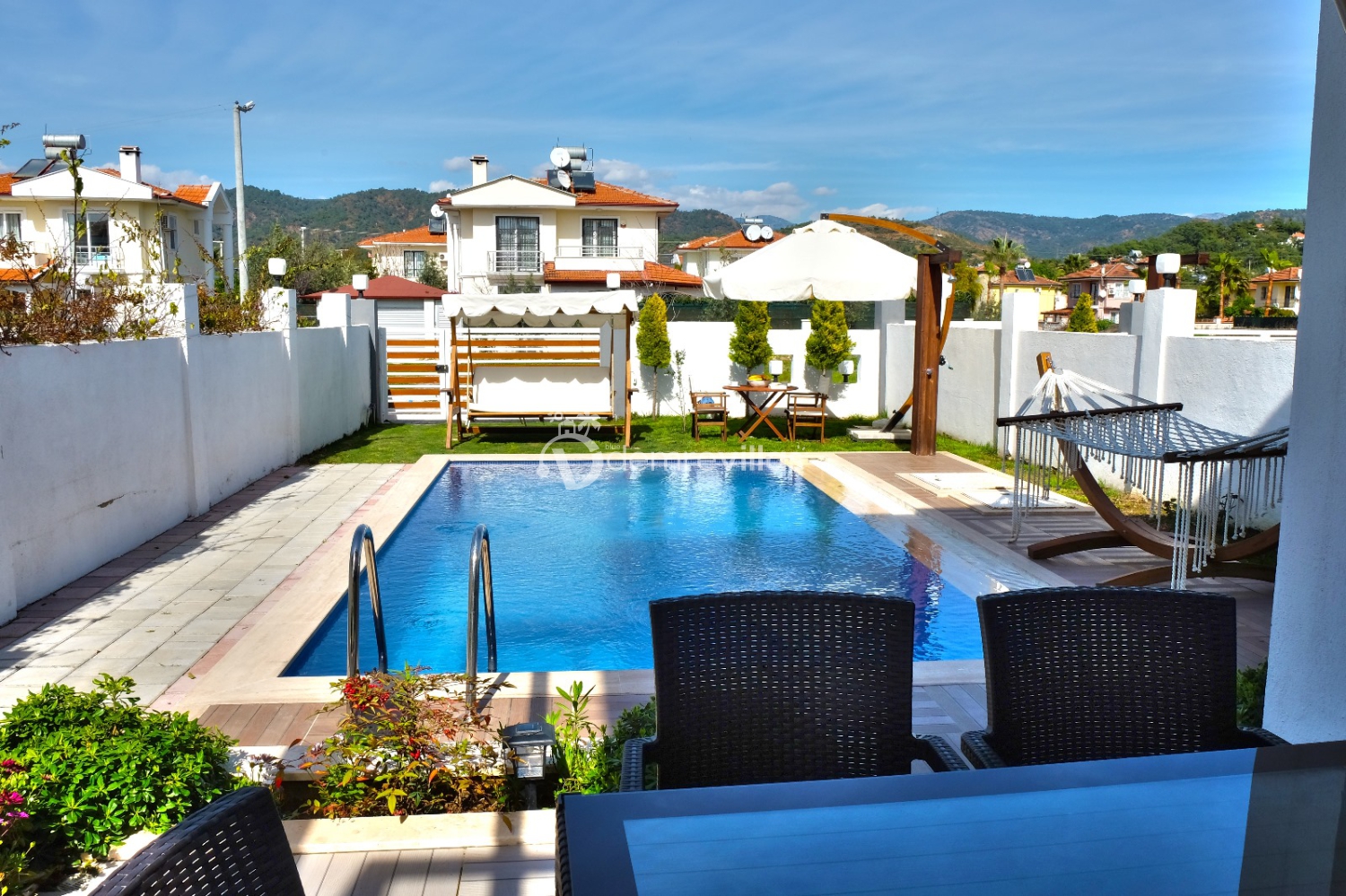 Coğrafi yapısı bakımında dağlık bir alana sahip olan bölgemizdeki villalarımız genel olarak yamaç üzerine kuruludur. Bu nedenle villalarımıza giderken yokuş yukarı çıkılmaktadır. Bu not sadece bu villa ile ilgili değildir. Tüm villalarımızda yazmaktadır.