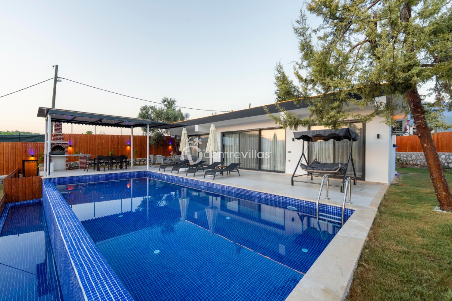 Tamamen korunaklı özel havuzu sayesinde muhafazakar ailelerin gönül rahatlığıyla tercih edebileceği villamızda, keyifli anlar yaşayabileceğiniz geniş bir bahçe alanı da bulunmaktadır. Jakuzili özel tasarımı ile dinlenme ve rahatlama imkanı sunan villa, modern ve şık iç dizaynı ile evinizin konforunu aratmaz.