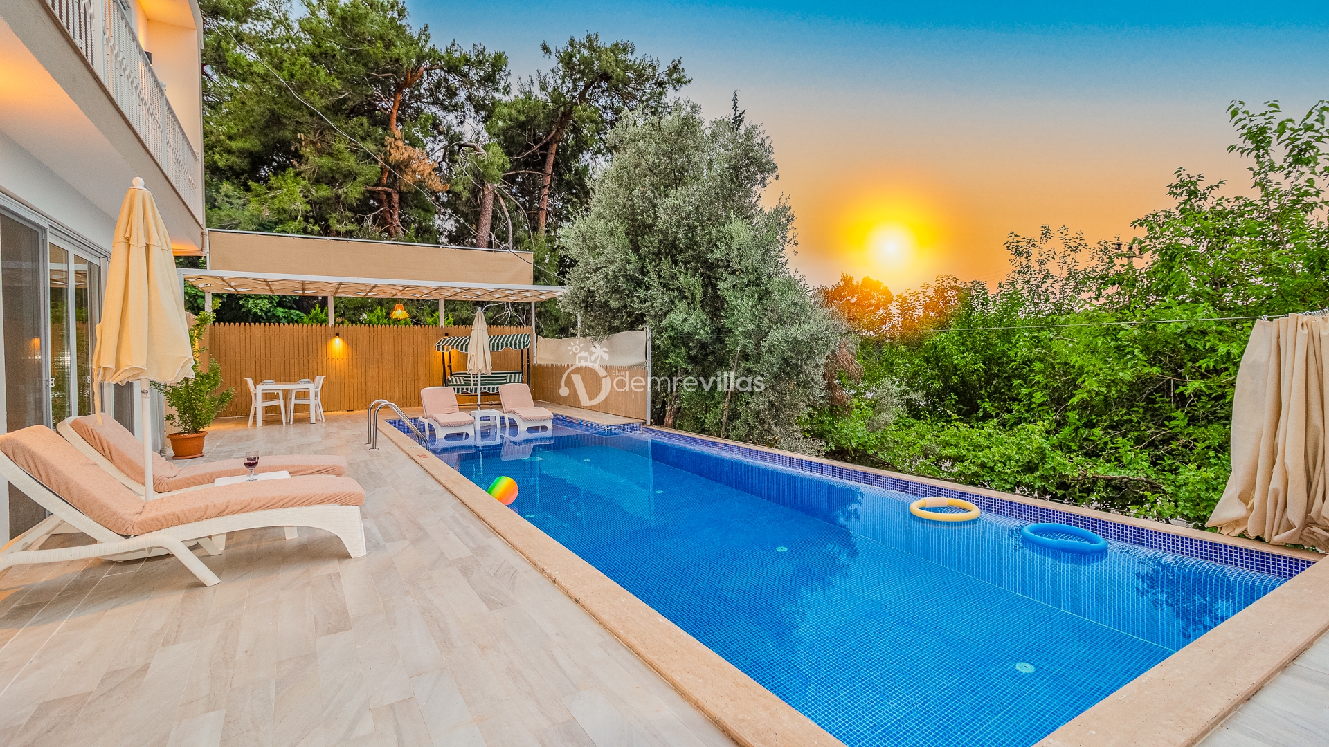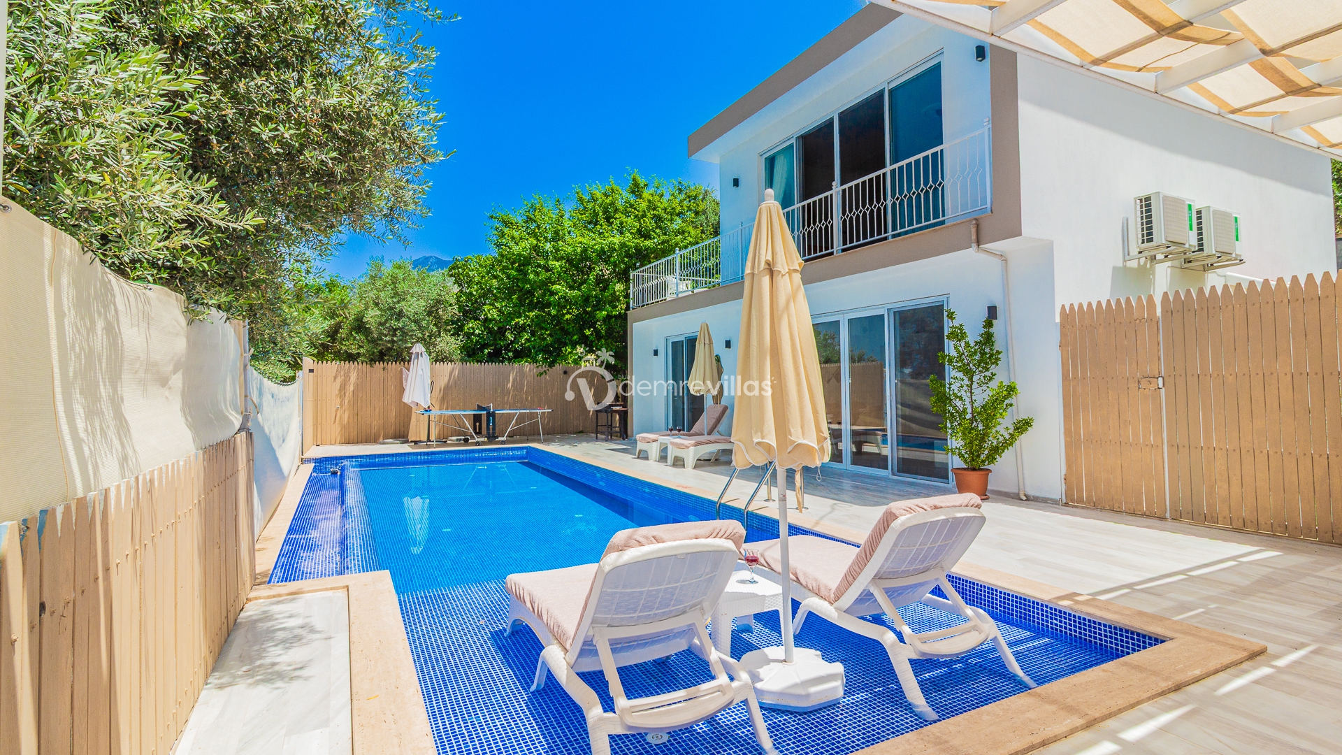 Kalkan Üzümlü Köyü'nde yer alan havuzu tam korunaklı, 2 yatak odalı 4 kişilik tatil villasıdır.