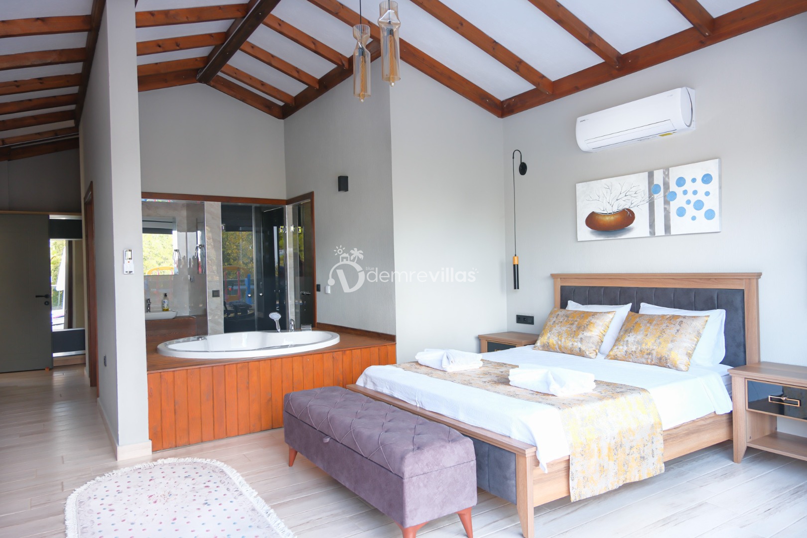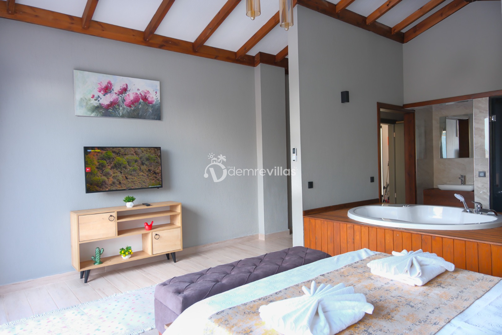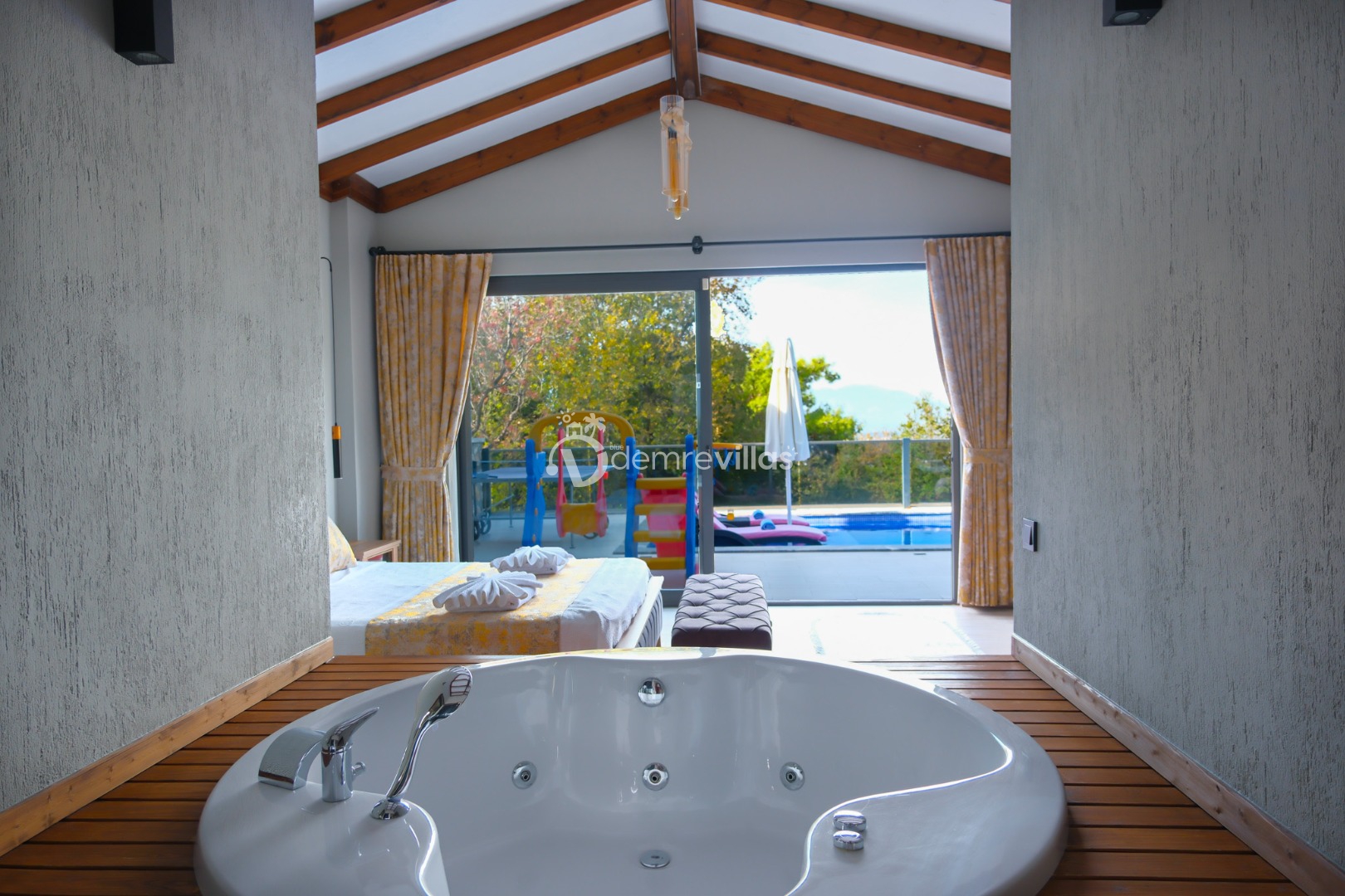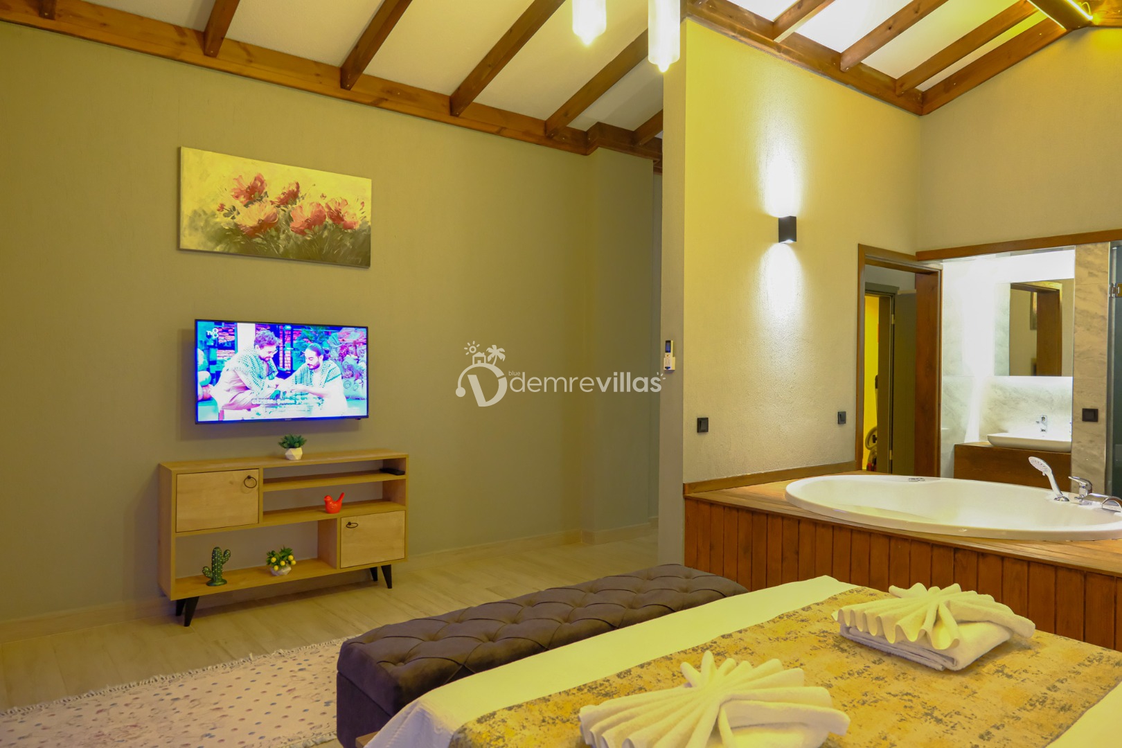 Villamız doğa ile iç içe konumlandırılmış olup, gözlerden uzak bir tatil imkanı sunmaktadır. Villamızın ana yatak odasında jakuzisi bulunmaktadır.
