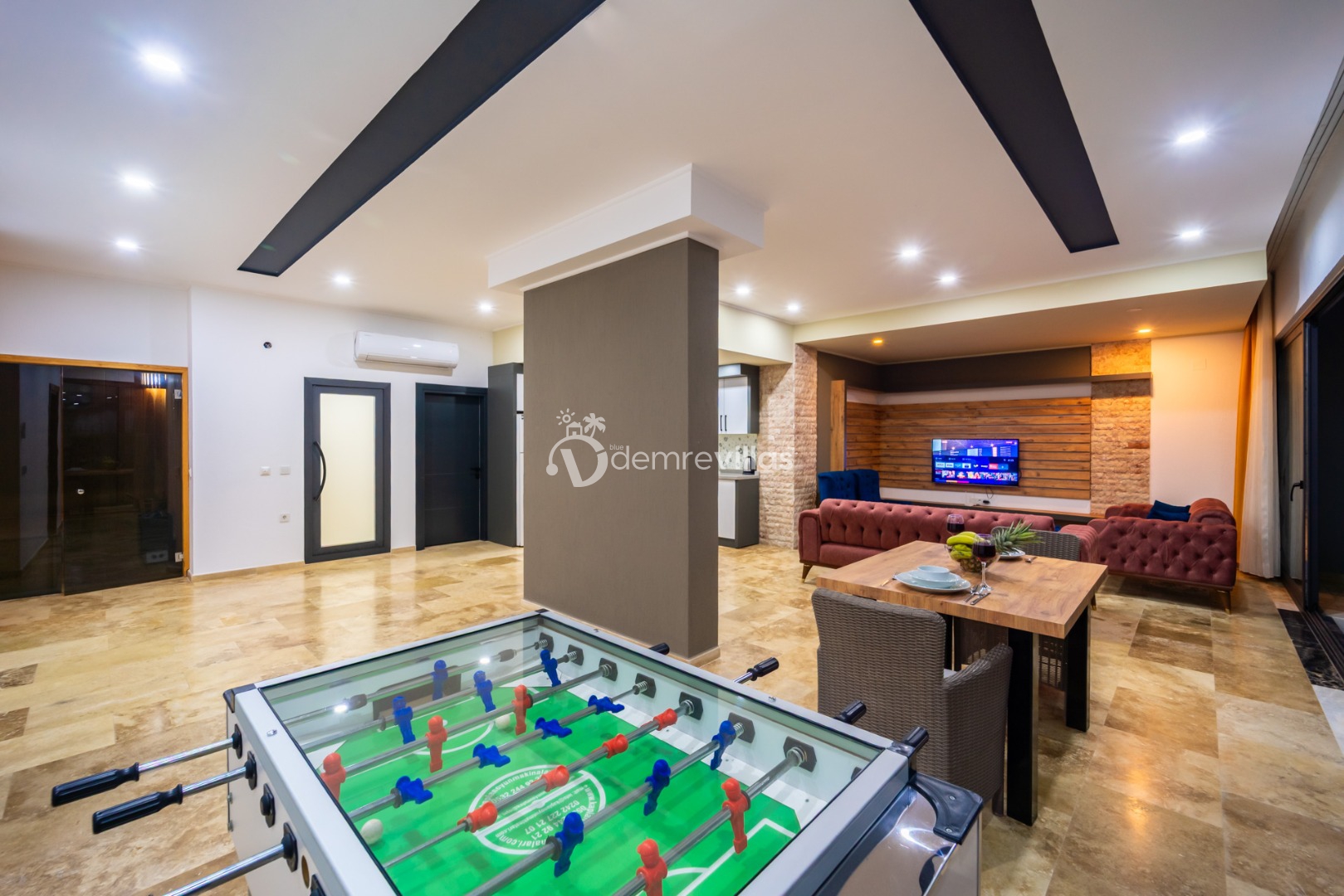 Tek yatak odalı villamızda hamam, sauna, jakuzi, langırt, ısıtmalı havuz, sinema odası gibi keyifli bir tatil geçirmeniz için tüm seçenekler bulunmaktadır.