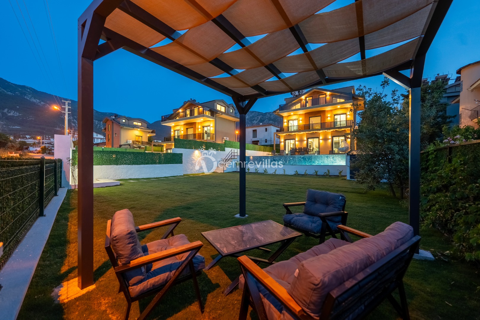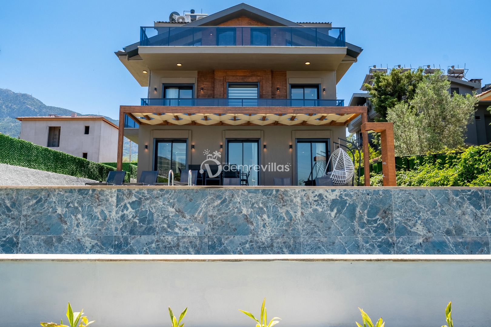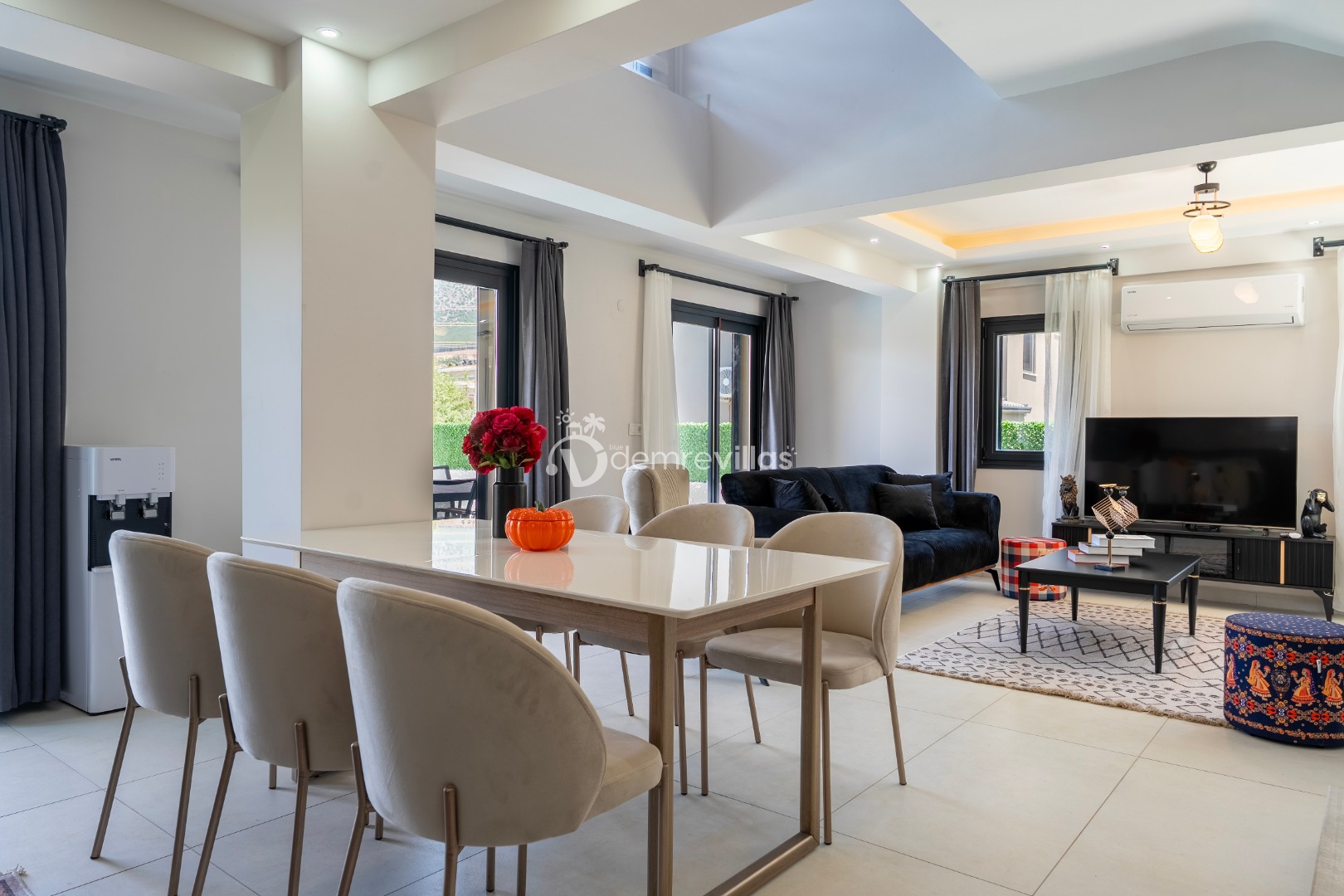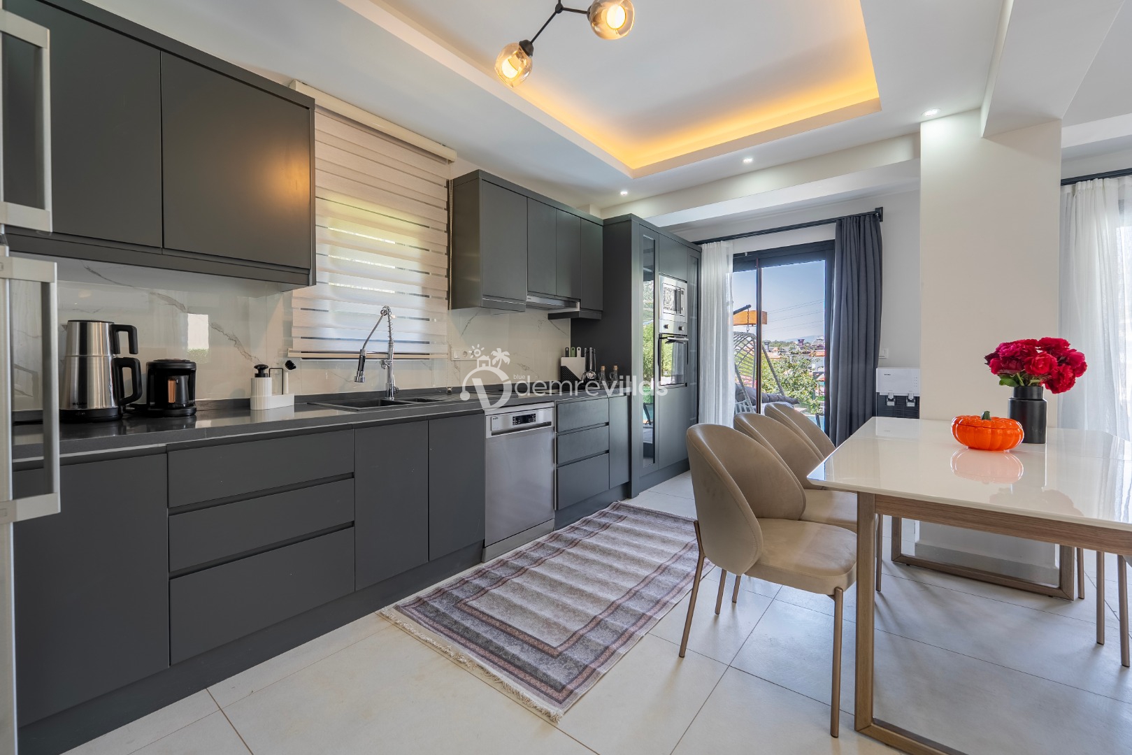 Fethiye merkez, Ölüdeniz ve eğlence mekanlarına oldukça yakın konumuyla da tercih sebebi olan villanın iç mekanı da dış mekan kadar ferah ve geniş bir yaşam alanı sunmaktadır.