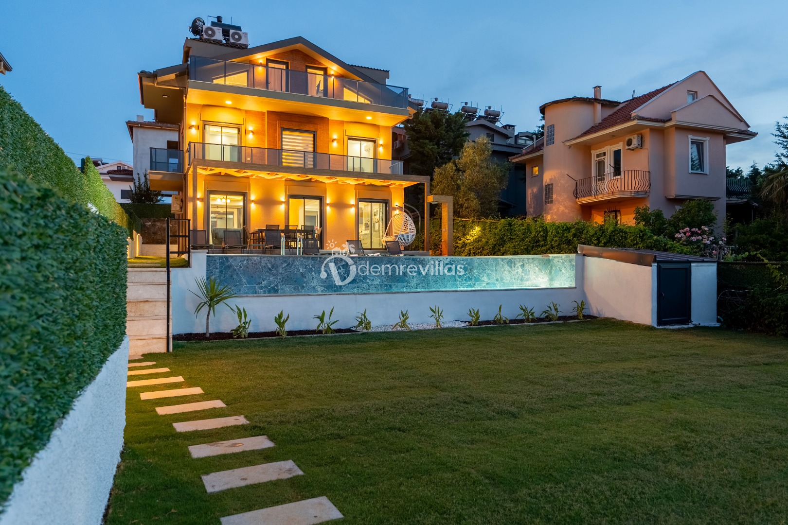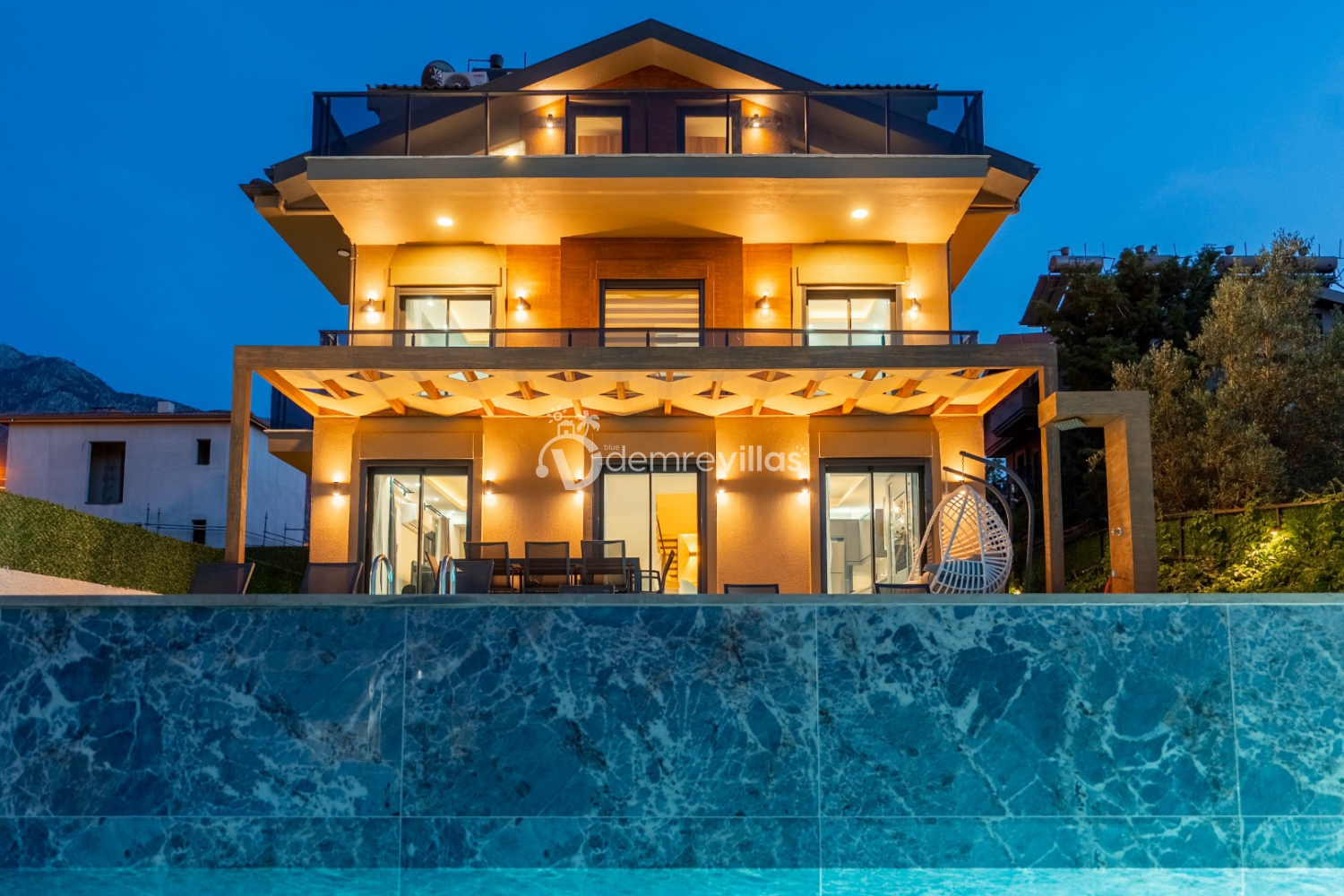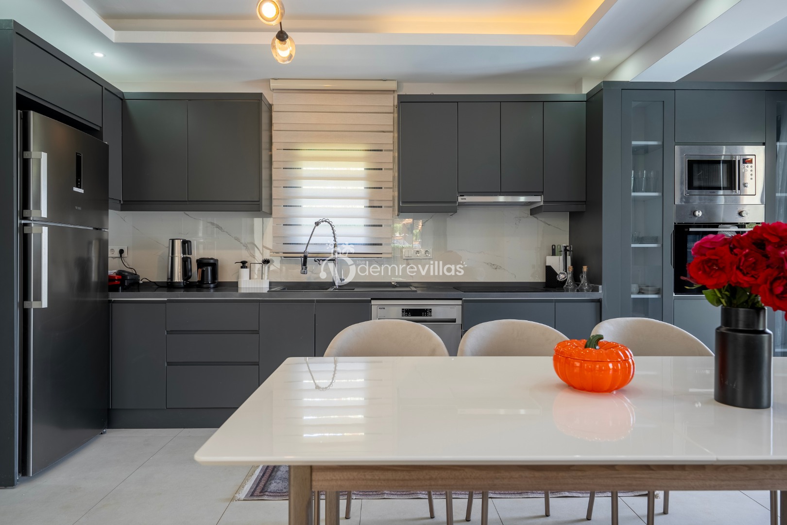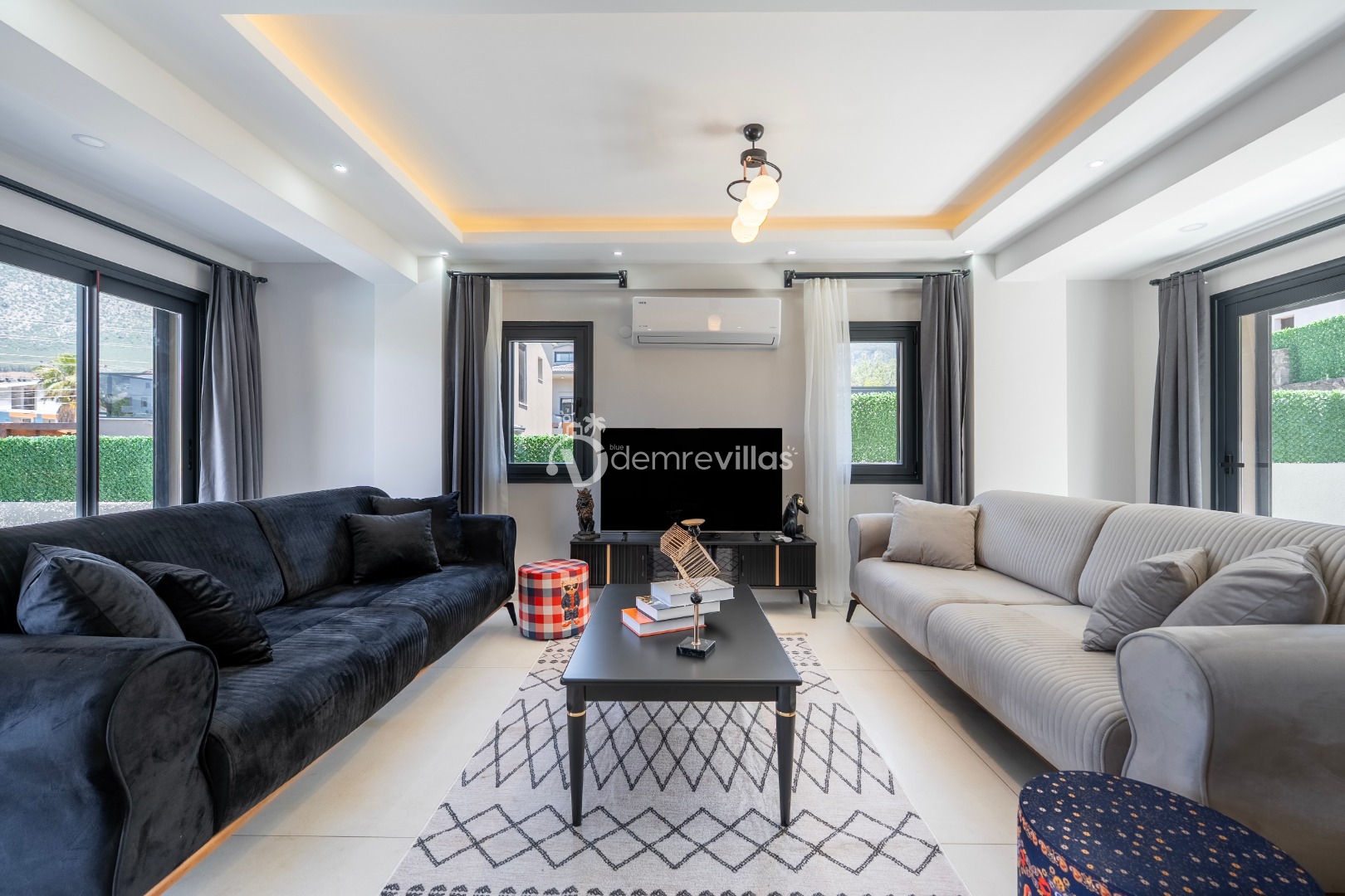 Fethiye merkez, Ölüdeniz ve eğlence mekanlarına oldukça yakın konumuyla da tercih sebebi olan villanın iç mekanı da dış mekan kadar ferah ve geniş bir yaşam alanı sunmaktadır.