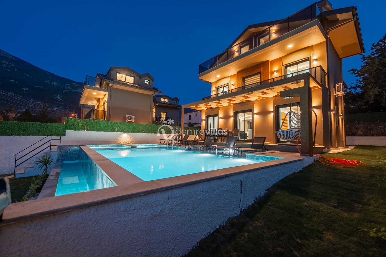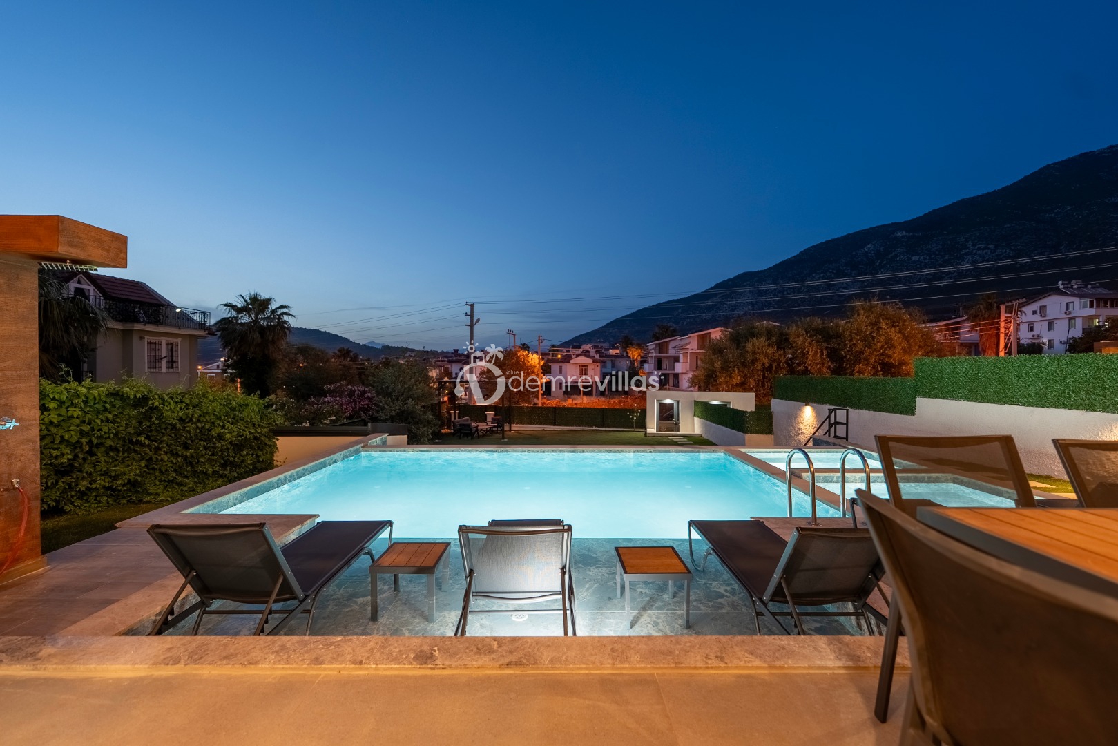 Fethiye Ölüdeniz bölgesinde bulunan villa, 4 yatak odası ile 8 kişilik konaklama kapasitesi sunmaktadır. Geniş havuz ve bahçe alanıyla hizmetinizde olan villamız kapasitesine uygun bahçe oturma grupları ve şezlonglara sahiptir.