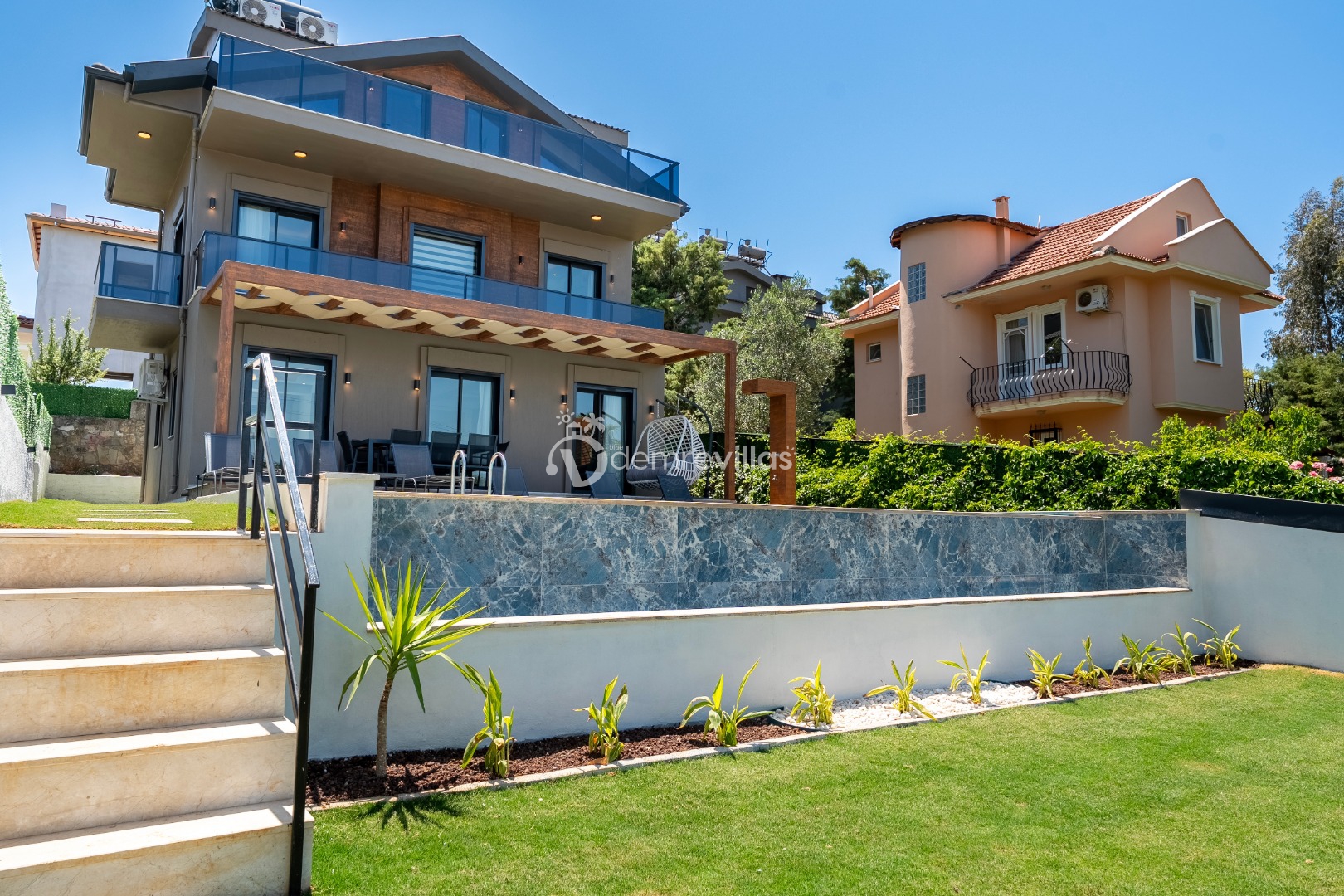 Coğrafi yapısı bakımında dağlık bir alana sahip olan bölgemizdeki villalarımız genel olarak yamaç üzerine kuruludur. Bu nedenle villalarımıza giderken yokuş yukarı çıkılmaktadır. Bu not sadece bu villa ile ilgili değildir. Tüm villalarımızda yazmaktadır.
