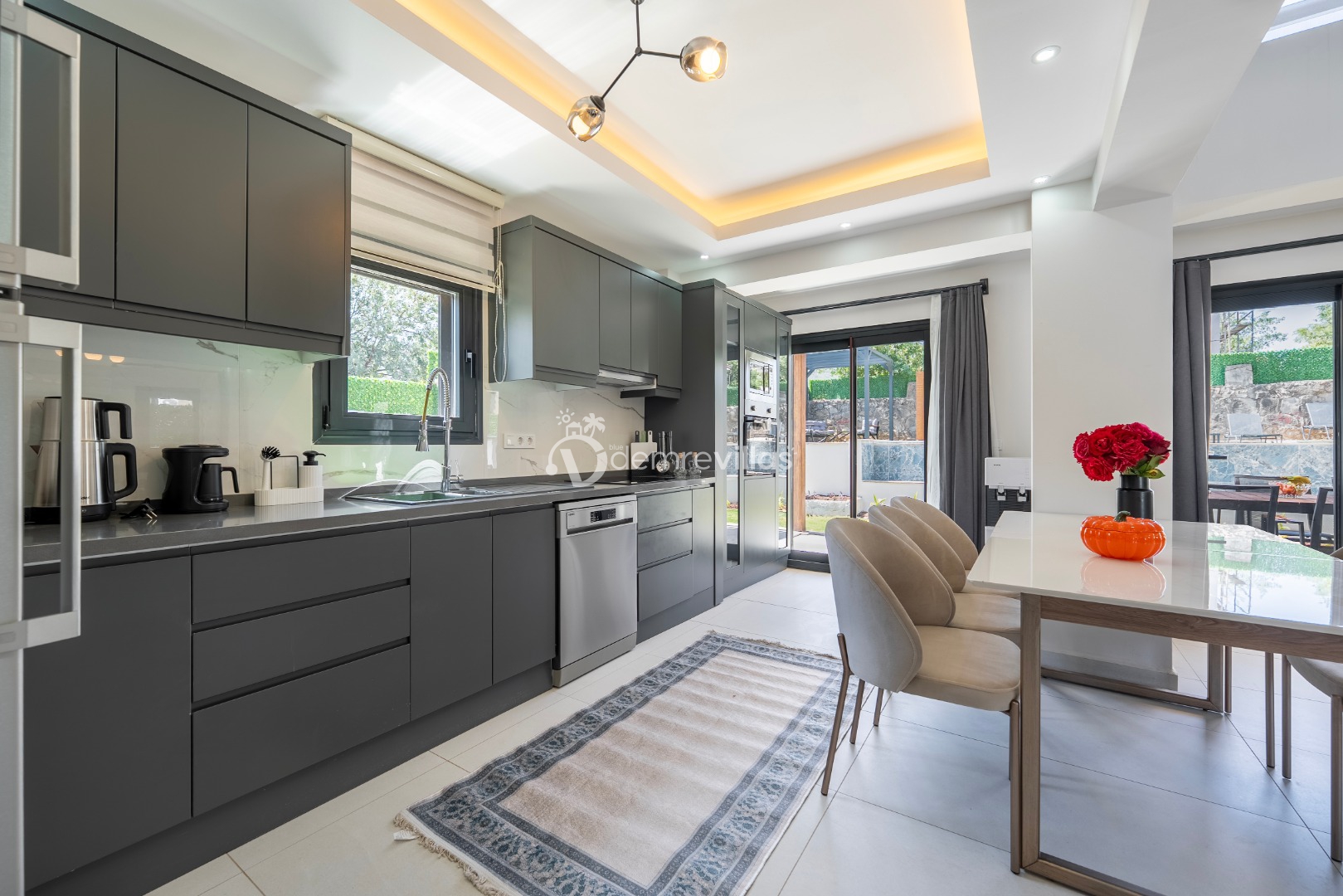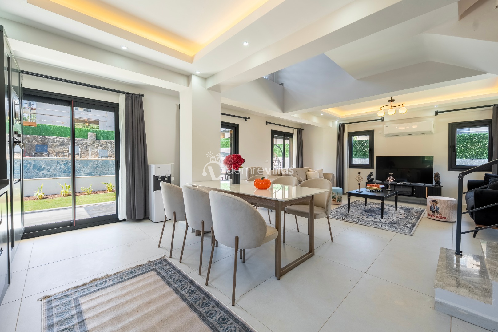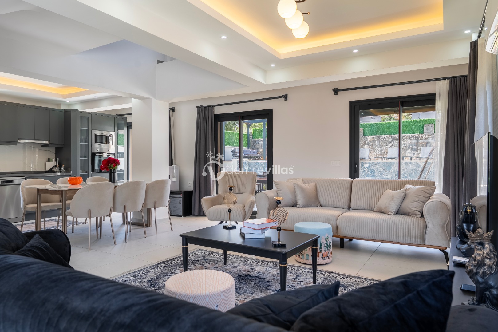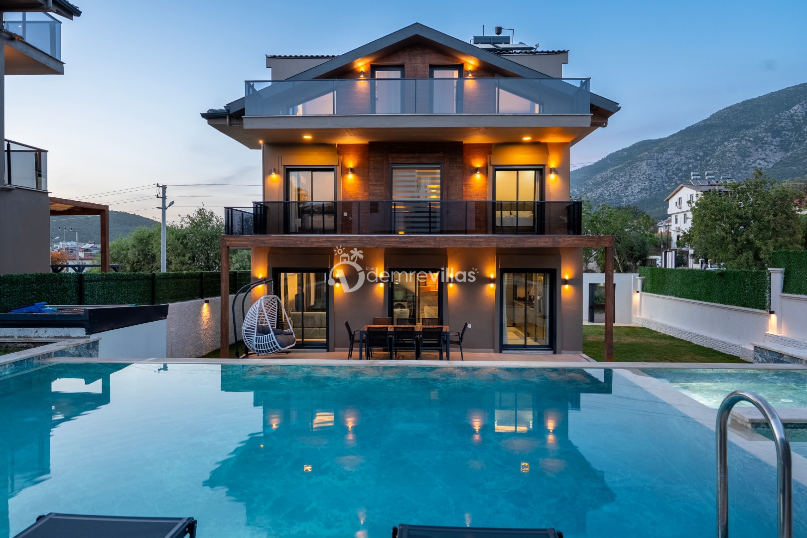 Fethiye merkez, Ölüdeniz ve eğlence mekanlarına oldukça yakın konumuyla da tercih sebebi olan villanın iç mekanı da dış mekan kadar ferah ve geniş bir yaşam alanı sunmaktadır.