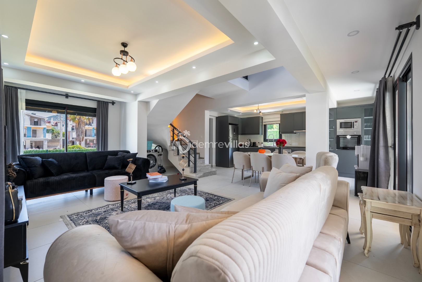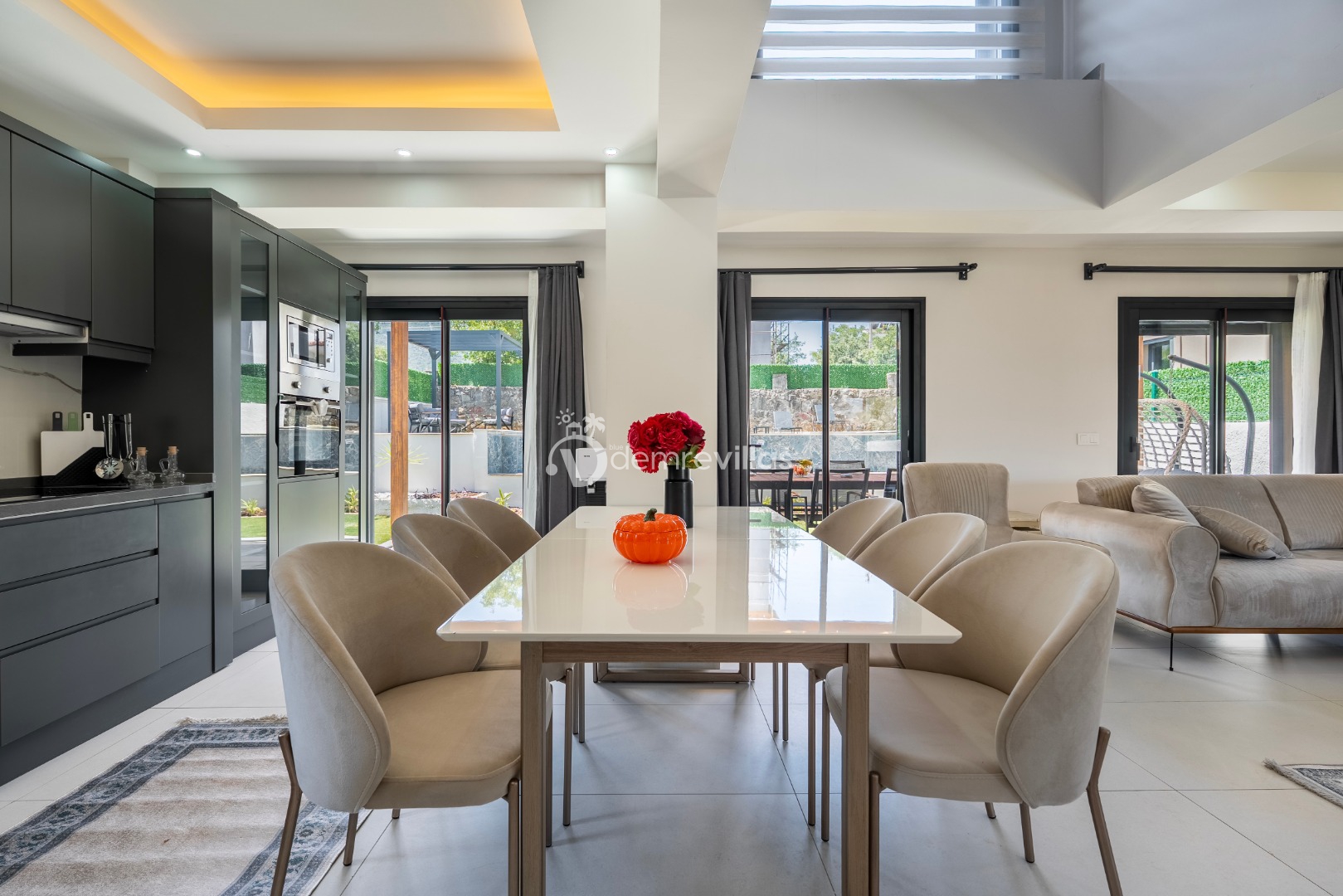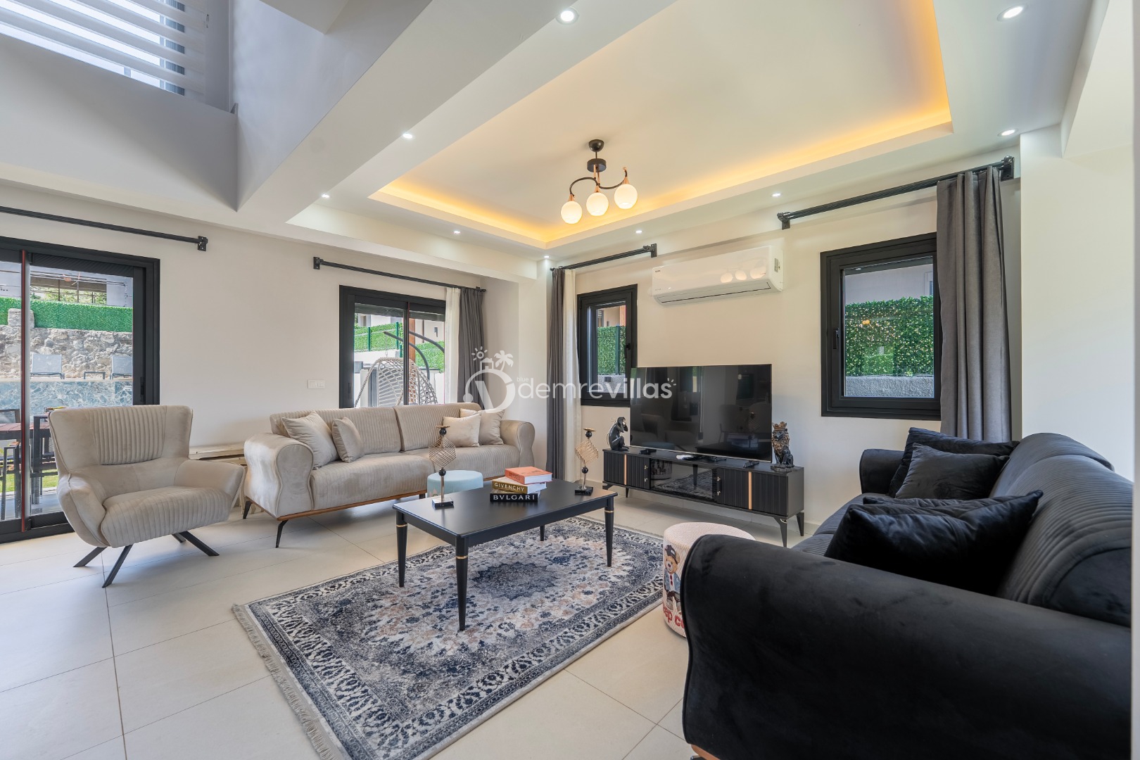 Fethiye merkez, Ölüdeniz ve eğlence mekanlarına oldukça yakın konumuyla da tercih sebebi olan villanın iç mekanı da dış mekan kadar ferah ve geniş bir yaşam alanı sunmaktadır.