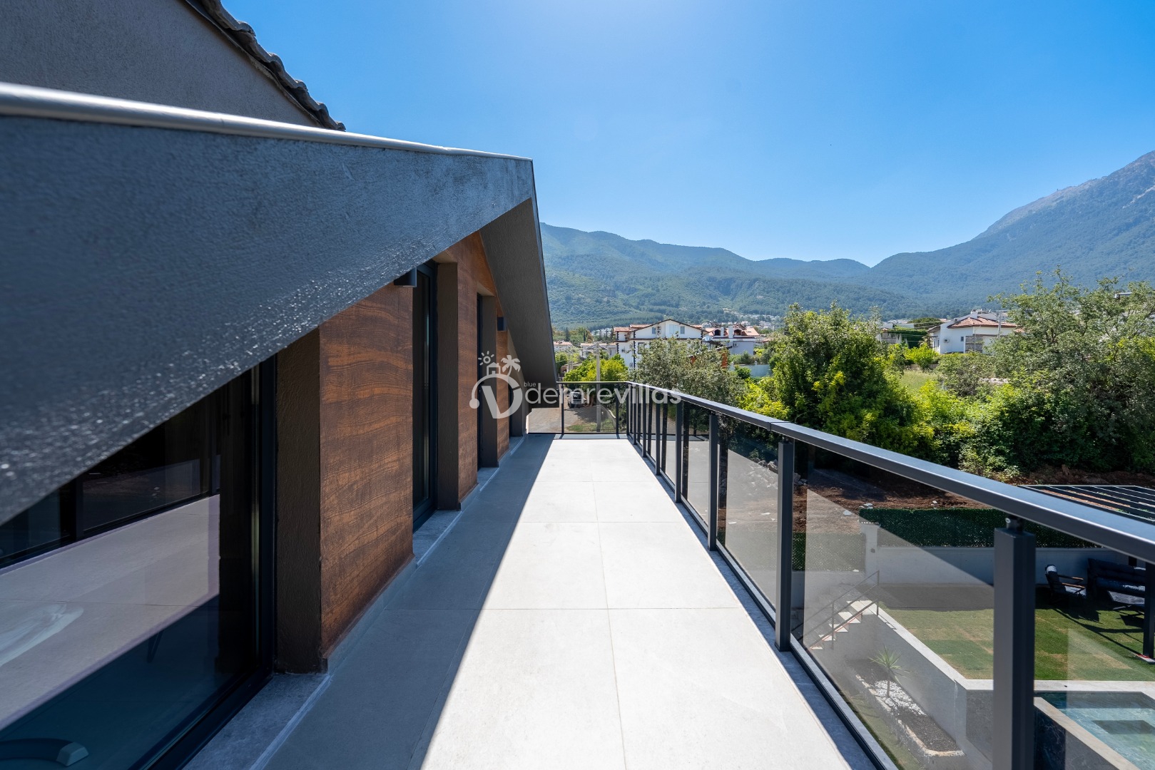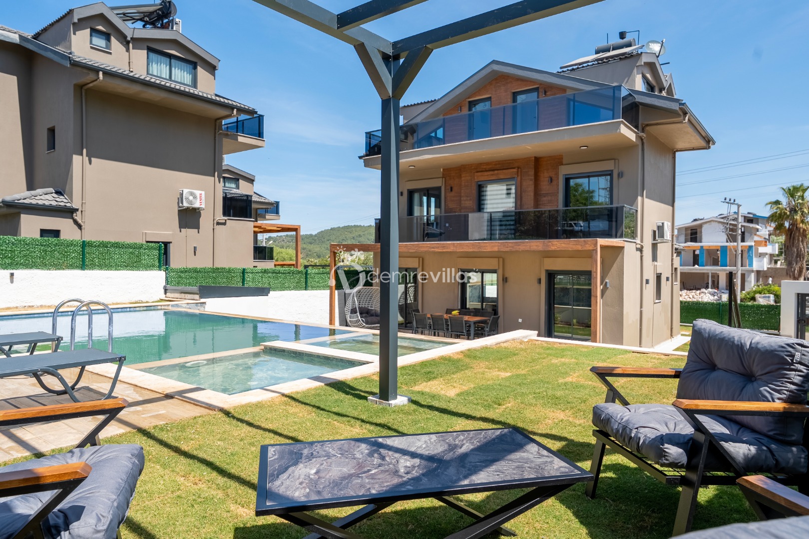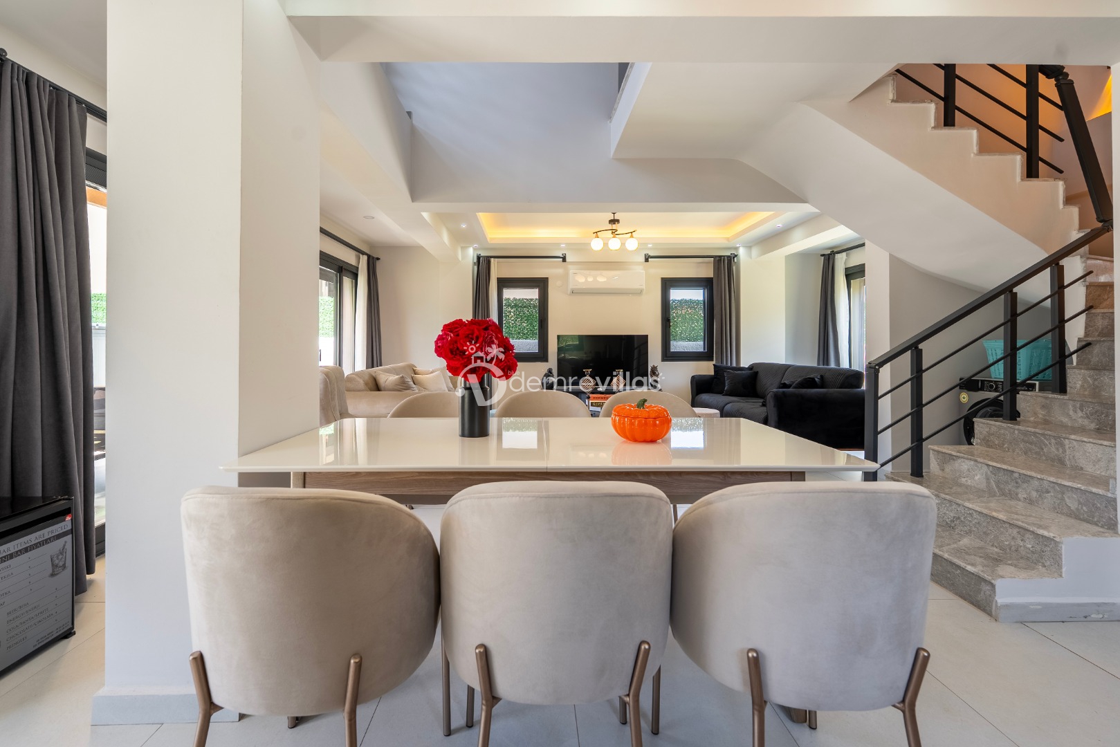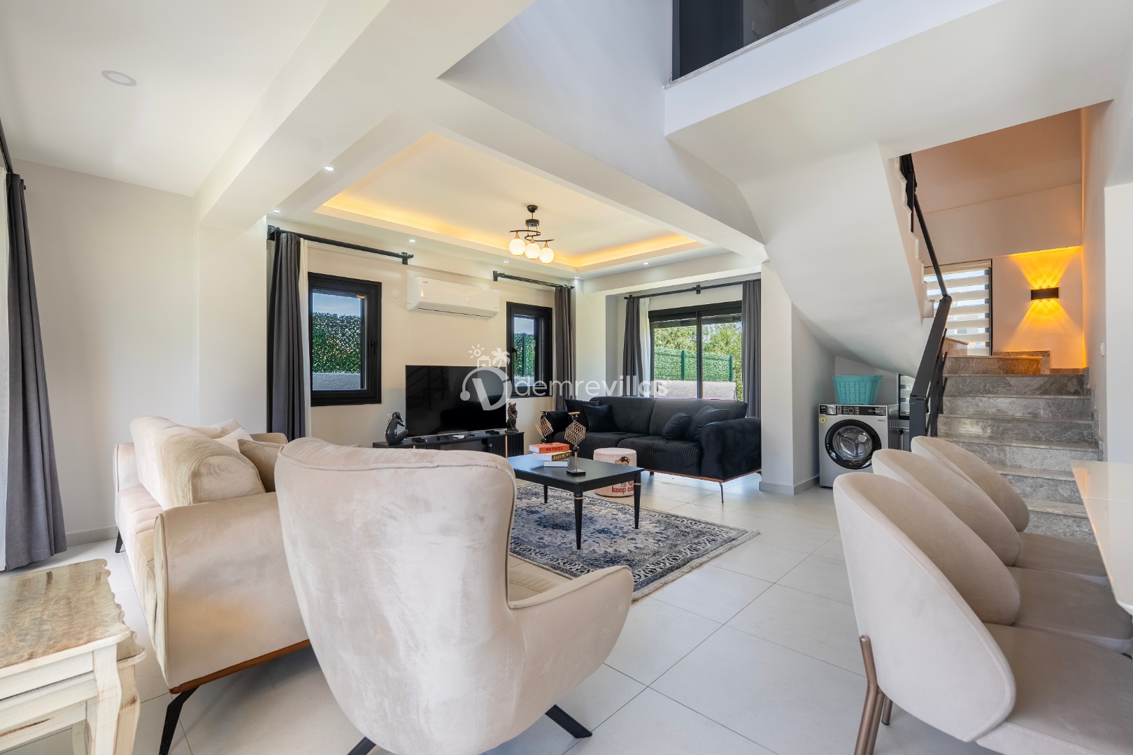 Fethiye merkez, Ölüdeniz ve eğlence mekanlarına oldukça yakın konumuyla da tercih sebebi olan villanın iç mekanı da dış mekan kadar ferah ve geniş bir yaşam alanı sunmaktadır.