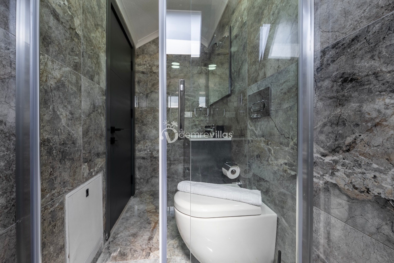 Coğrafi yapısı bakımında dağlık bir alana sahip olan bölgemizdeki villalarımız genel olarak yamaç üzerine kuruludur. Bu nedenle villalarımıza giderken yokuş yukarı çıkılmaktadır. Bu not sadece bu villa ile ilgili değildir. Tüm villalarımızda yazmaktadır.
