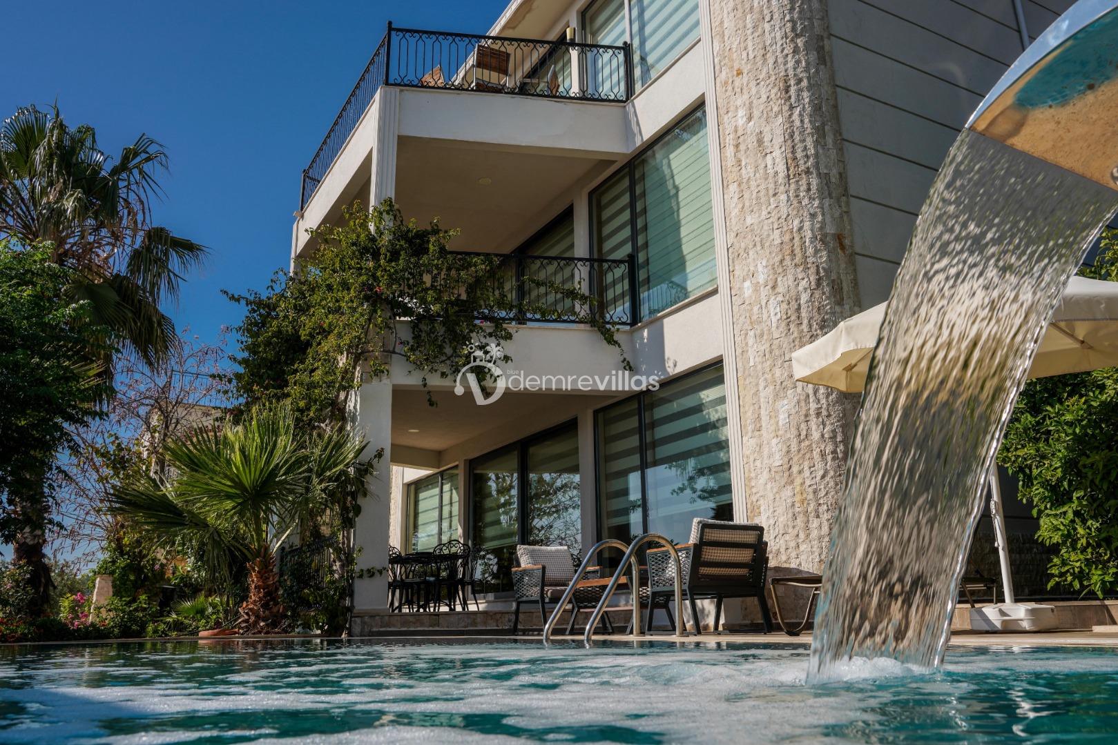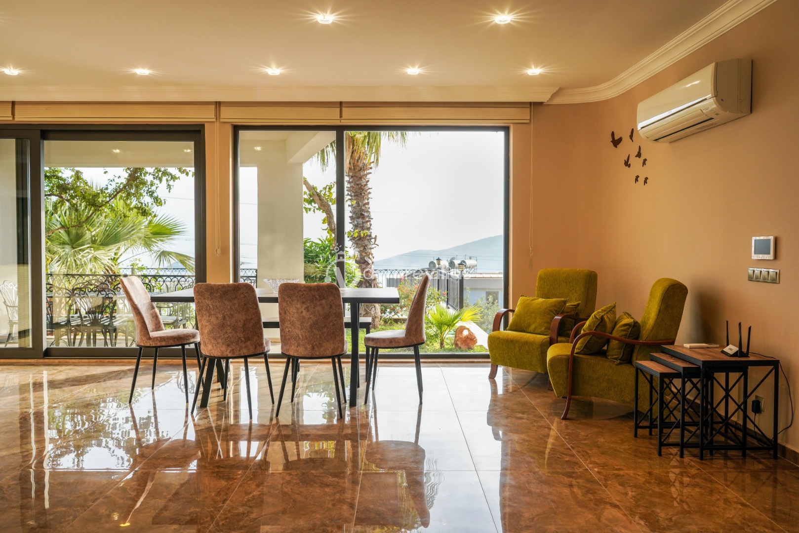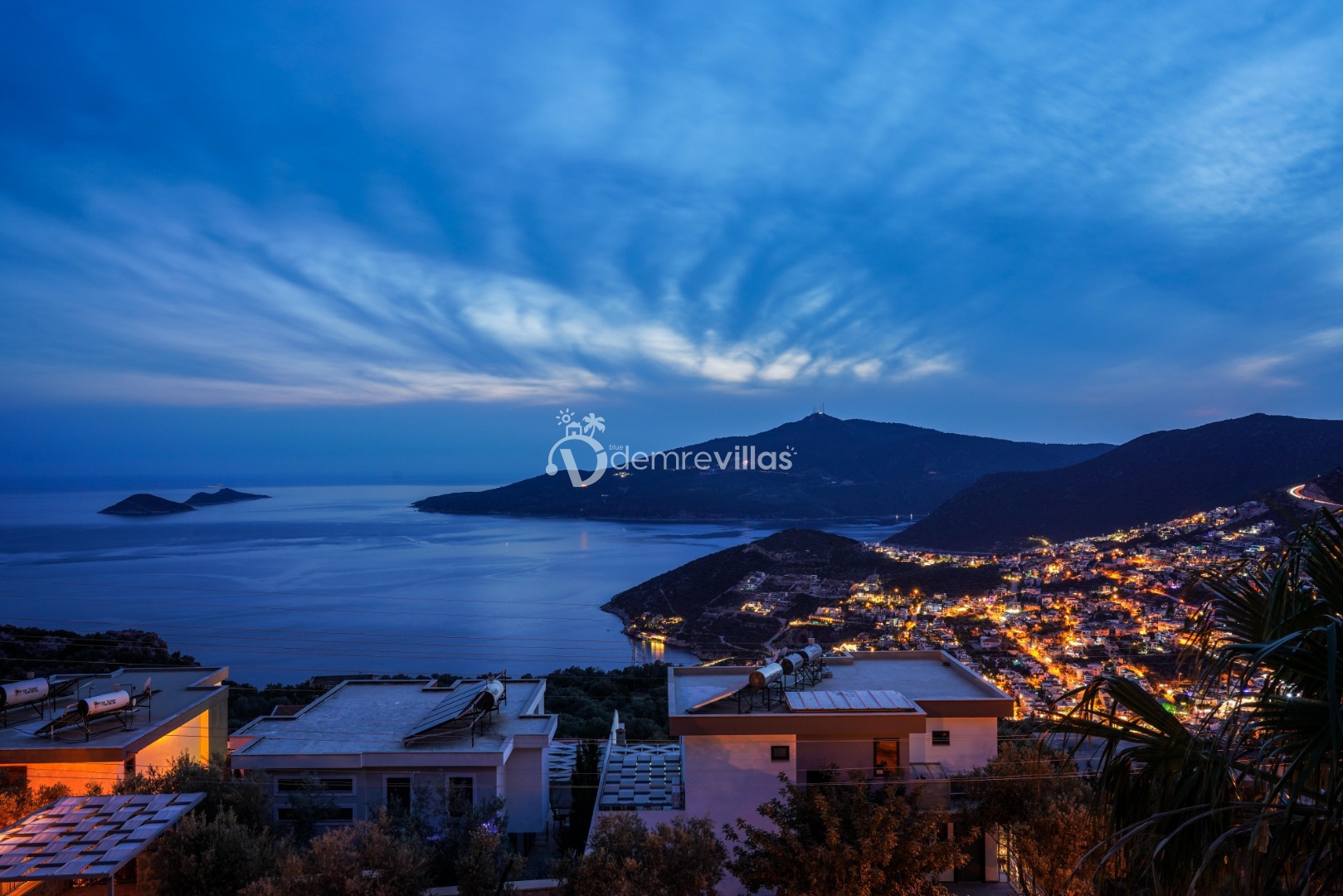 Villanın pencerelerinden Kalkan’ın büyüleyici deniz manzarasını ve adalar manzarasını izlemek mümkündür. Modern mimarisi ve şık iç dekorasyonu sayesinde misafirlerine hem konforlu hem de estetik bir yaşam alanı sunar. Villanın iç mekânında kullanılan mobilyalar modern ve kaliteli tasarımlarıyla dikkat çekmektedir.