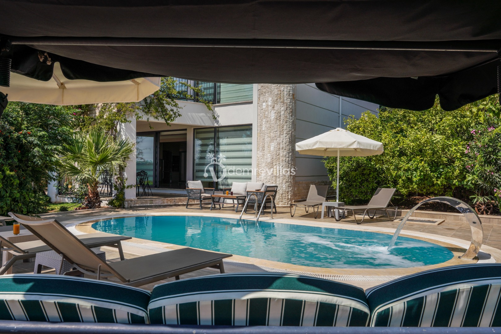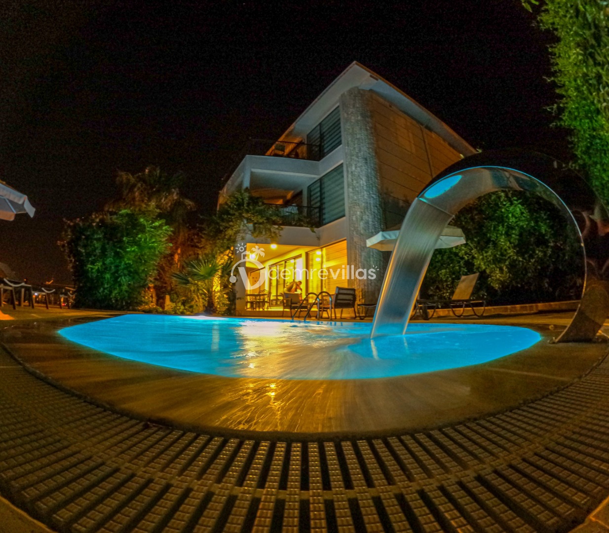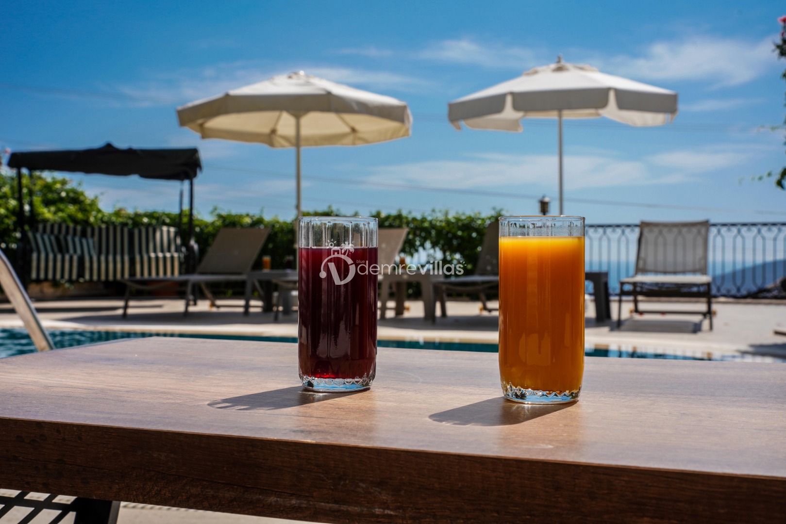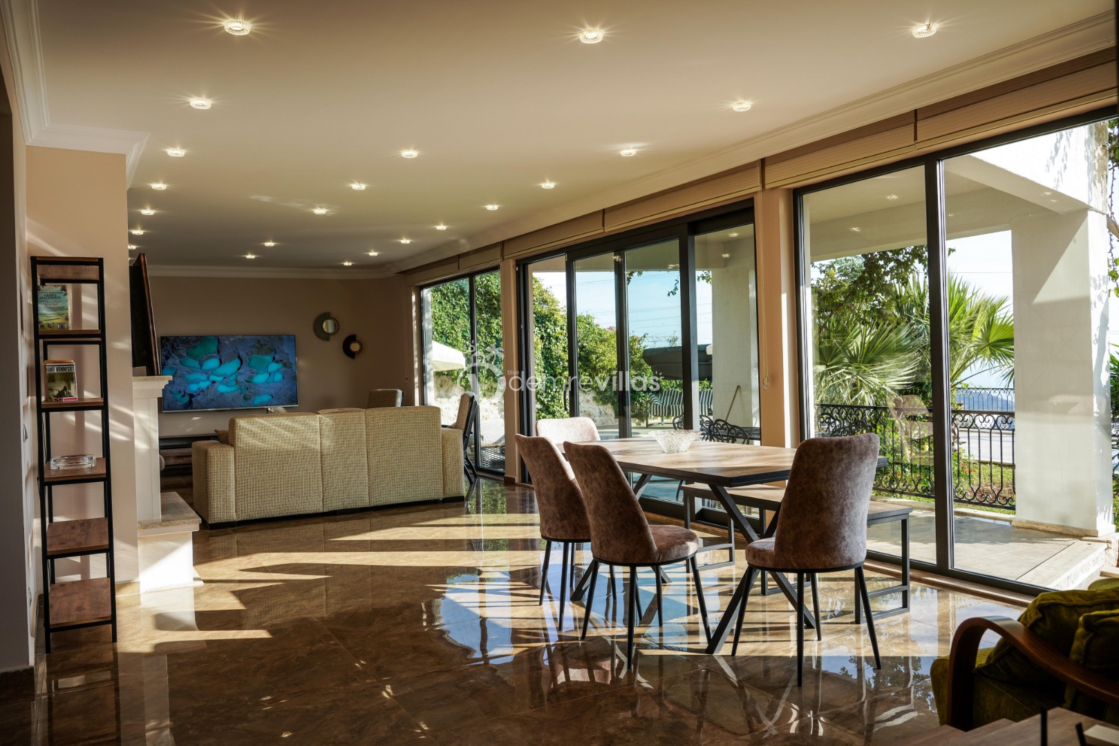 Villanın pencerelerinden Kalkan’ın büyüleyici deniz manzarasını ve adalar manzarasını izlemek mümkündür. Modern mimarisi ve şık iç dekorasyonu sayesinde misafirlerine hem konforlu hem de estetik bir yaşam alanı sunar. Villanın iç mekânında kullanılan mobilyalar modern ve kaliteli tasarımlarıyla dikkat çekmektedir.