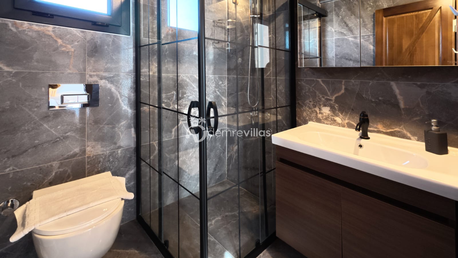 Coğrafi yapısı bakımında dağlık bir alana sahip olan bölgemizdeki villalarımız genel olarak yamaç üzerine kuruludur. Bu nedenle villalarımıza giderken yokuş yukarı çıkılmaktadır. Bu not sadece bu villa ile ilgili değildir. Tüm villalarımızda yazmaktadır.