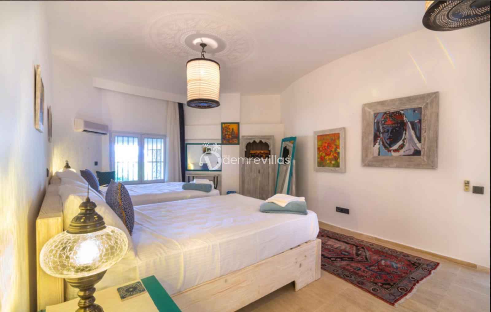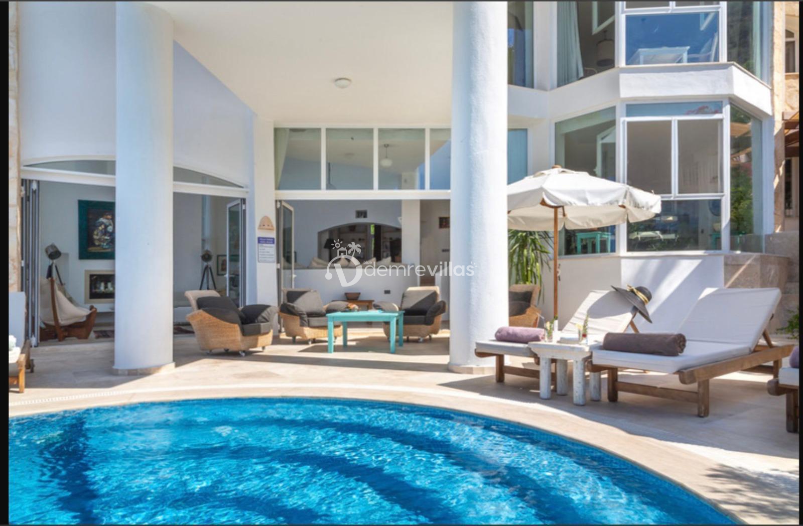 10 kişilik kapasitesi ile geniş ve ferah yaşam alanları sunan Villada toplam 5 yatak odası ve 5 banyo bulunuyor. Her oda özel banyo ve klima ile donatılmış. Ayrıca modern açık mutfağı, tam donanımı ve büyük oturma alanları ile hem konforlu hem şık bir atmosfer sunuyor.