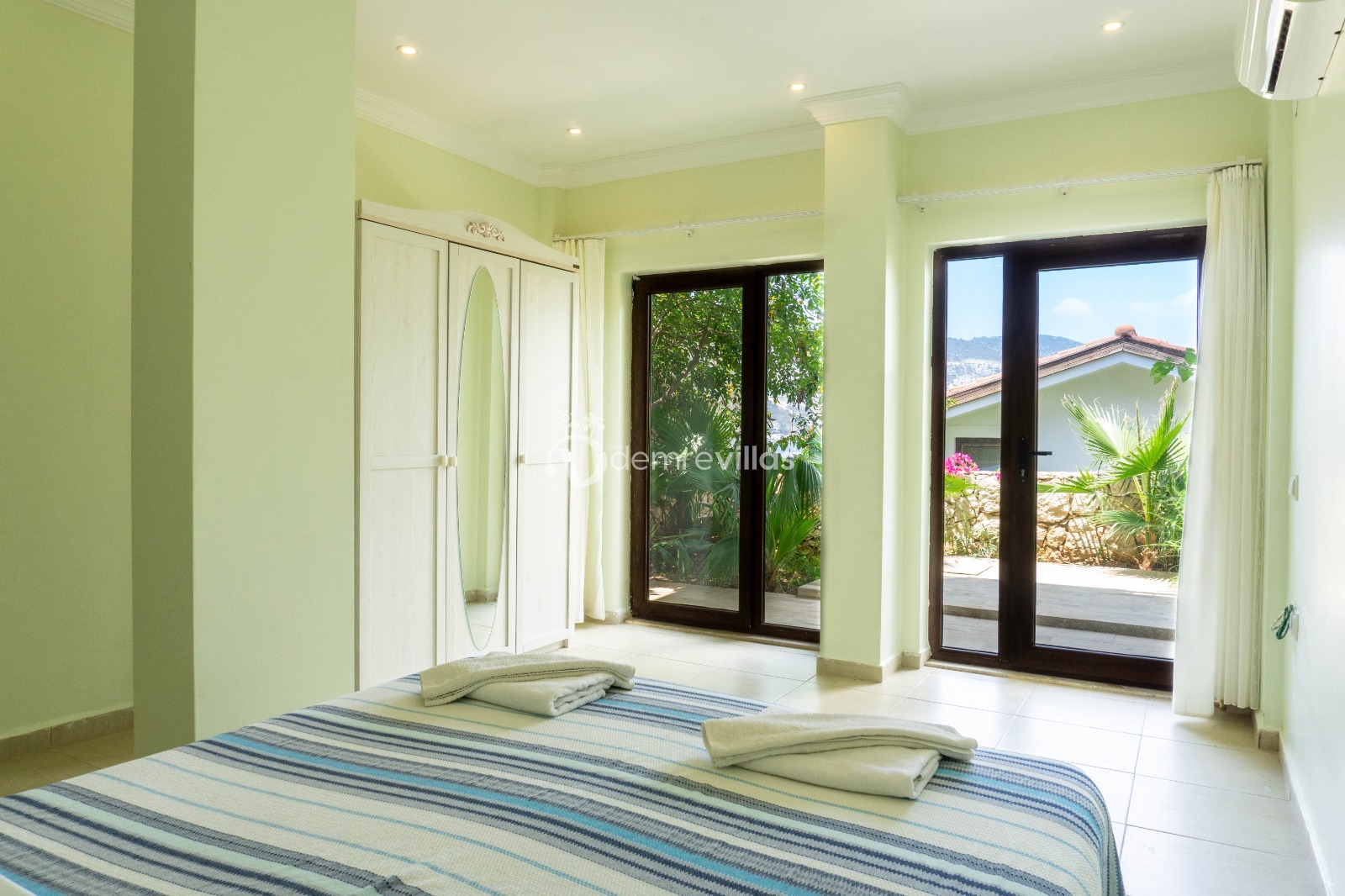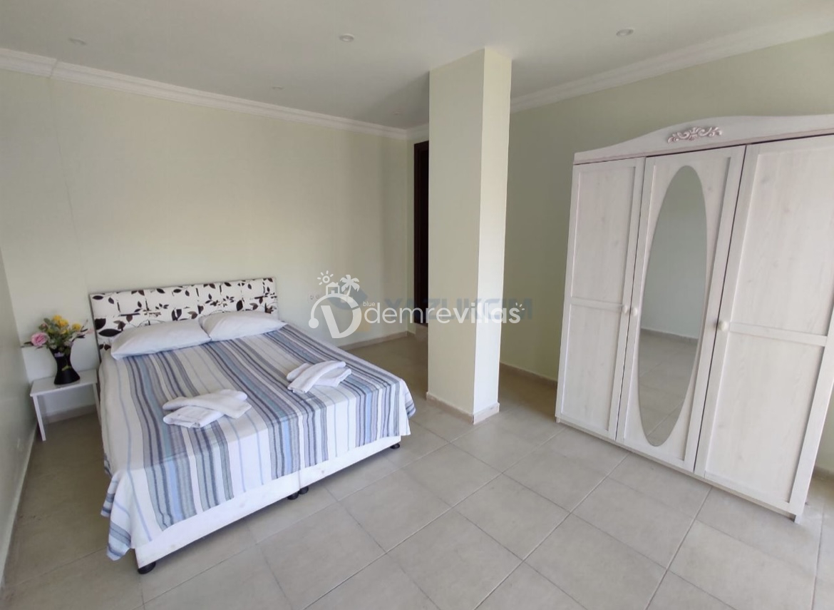 Toplam 3 yatak odasından oluşmuş, 6 kişi konaklama kapasitesine sahiptir. Geniş aileler ve kalabalık arkadaş grupları için oldukça idealdir. Oldukça şık ve modern bir şekilde döşenmiş olan villamızda misafirlerimiz için her şey düşünülmüştür. Havuz terasında bulunan şezlonglarda güneşlenebilir, bahçe masasında muhteşem yemekler yiyebilir, salıncakta sallanıp keyifli dakikalar geçirebilirsiniz.