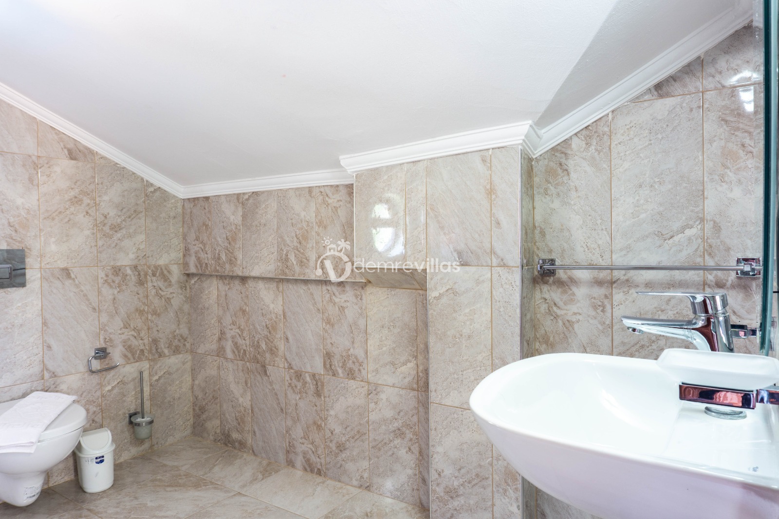 Coğrafi yapısı bakımında dağlık bir alana sahip olan bölgemizdeki villalarımız genel olarak yamaç üzerine kuruludur. Bu nedenle villalarımıza giderken yokuş yukarı çıkılmaktadır. Bu not sadece bu villa ile ilgili değildir. Tüm villalarımızda yazmaktadır.
