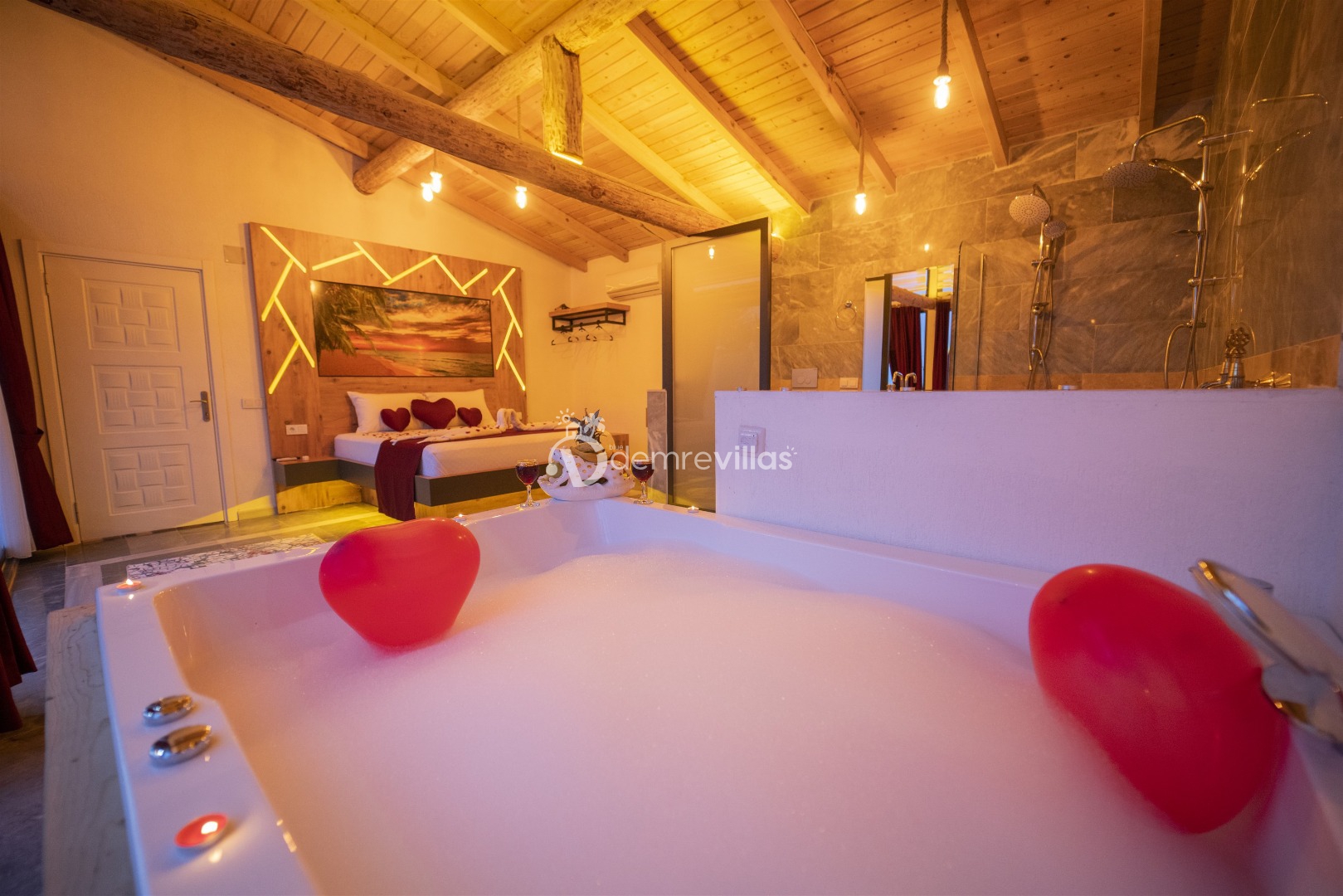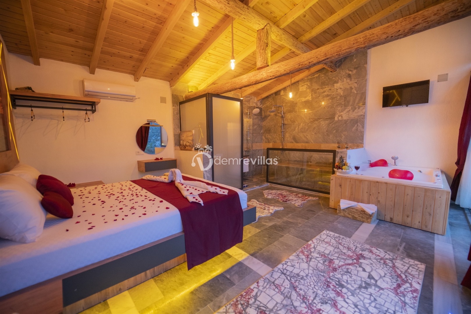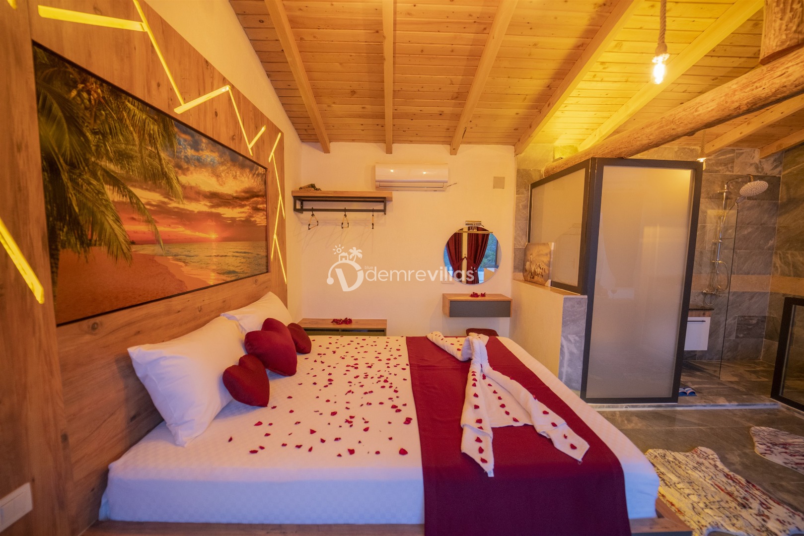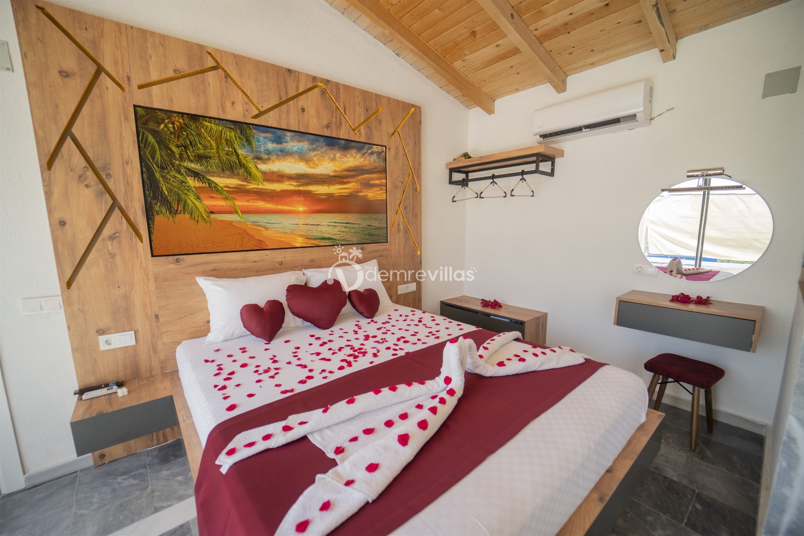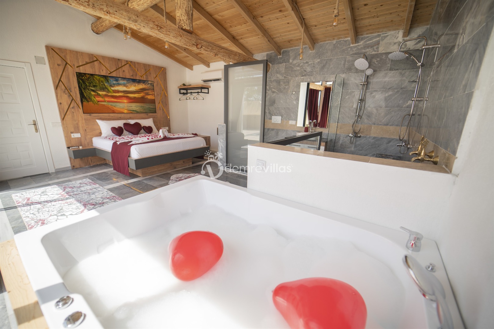 Tek yatak odası ile 2 kişilik konaklama kapasitesine sahip kiralık balayı villasıdır.Doğa içinde harika bir konuma sahip, korunaklı havuzlu, jakuzili ve şık villamızda unutulmaz bir balayı tatili sizleri bekliyor.