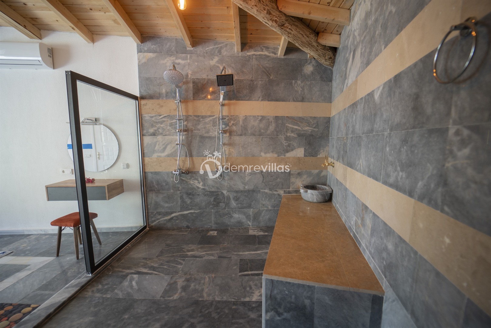 Coğrafi yapısı bakımında dağlık bir alana sahip olan bölgemizdeki villalarımız genel olarak yamaç üzerine kuruludur. Bu nedenle villalarımıza giderken yokuş yukarı çıkılmaktadır. Bu not sadece bu villa ile ilgili değildir. Tüm villalarımızda yazmaktadır.