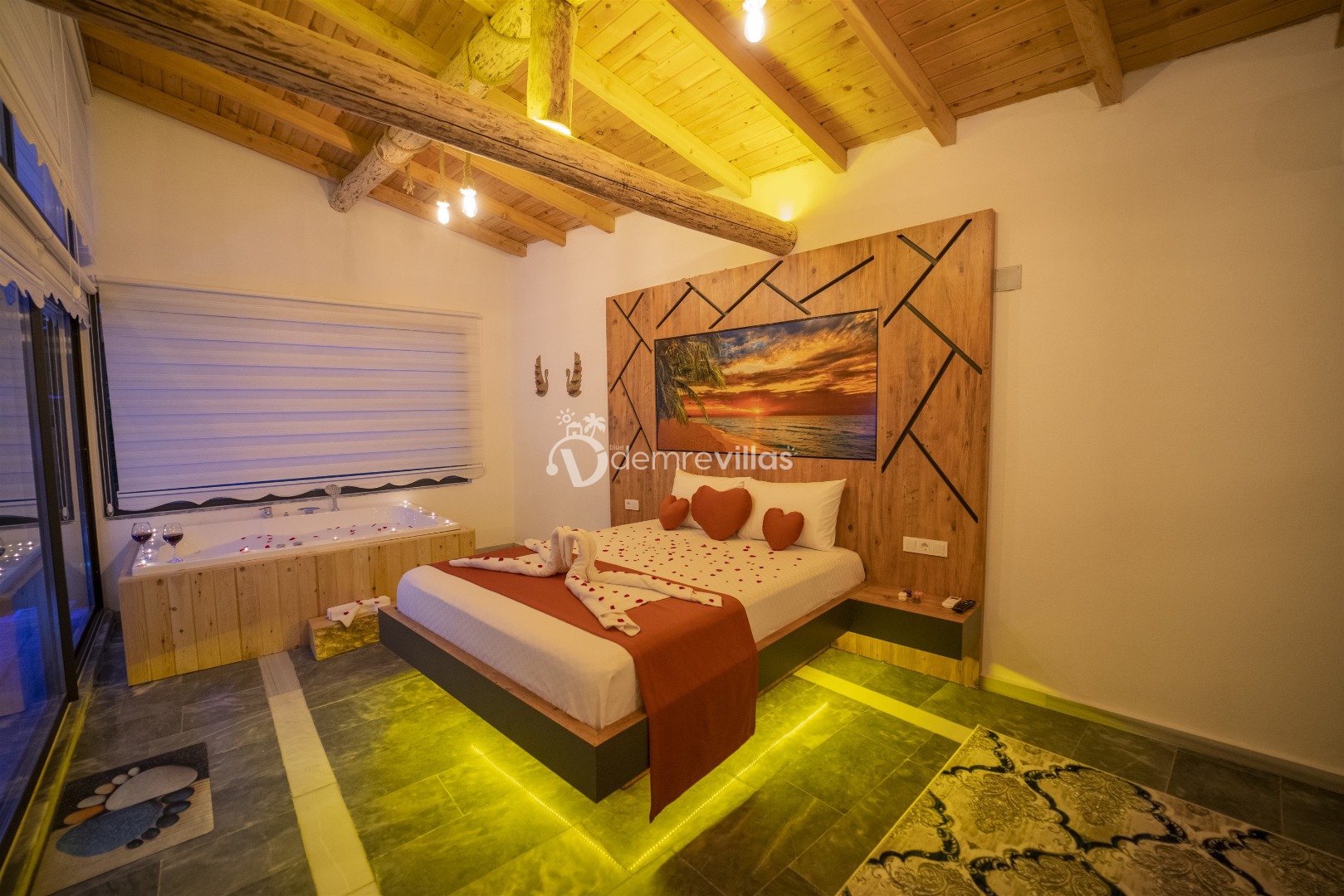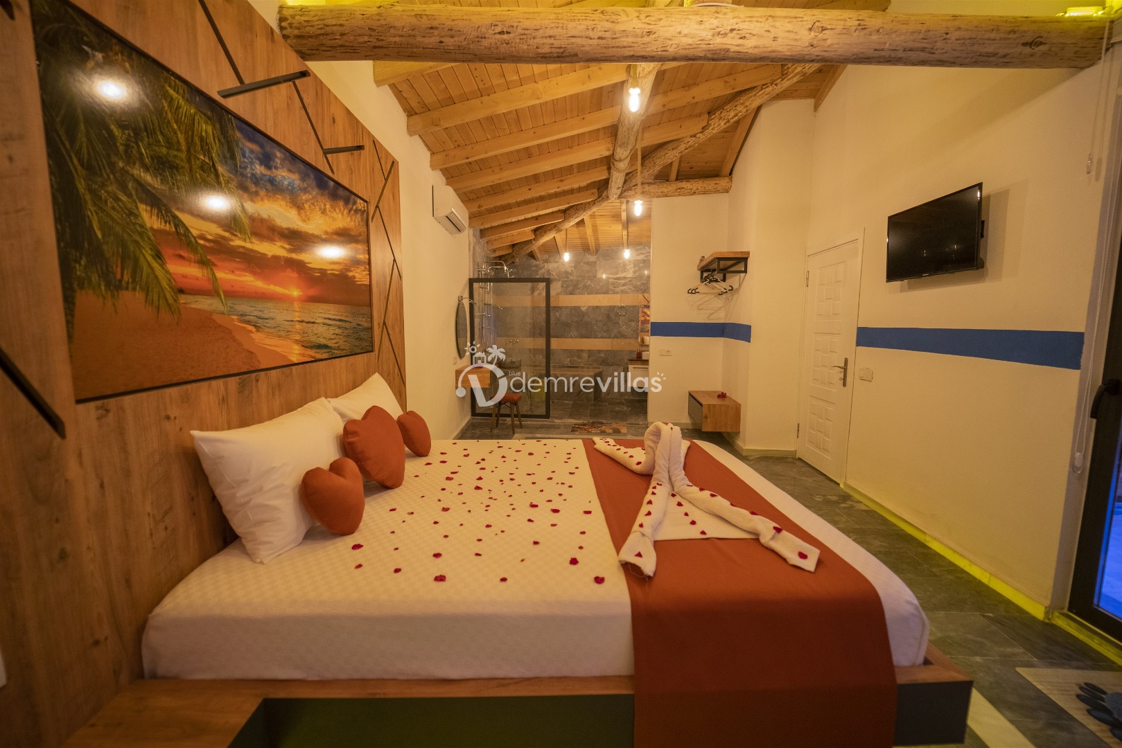 Tek yatak odası ile 2 kişilik konaklama kapasitesine sahip kiralık balayı villasıdır.Doğa içinde harika bir konuma sahip, korunaklı havuzlu, jakuzili ve şık villamızda unutulmaz bir balayı tatili sizleri bekliyor.