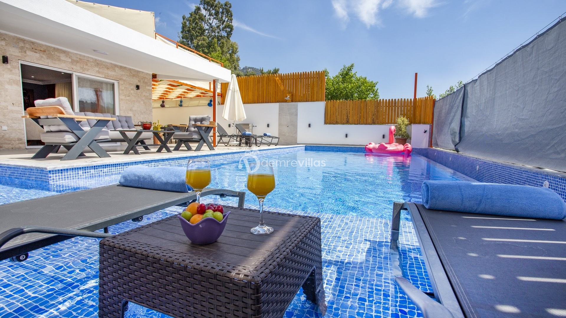 Üzümlü ve İslamlar yol ayrımında, sessiz ve sakin bir konumda yer alan villamız, 2 yatak odası ve 4 kişilik konaklama kapasitesine sahiptir. Muhafazakar villamızın havuz terasında ailenizle birlikte harika bir tatil geçirebilmeniz için özel havuz, damla salıncak, bahçe oturma grubu ve yemek masası yer almaktadır.